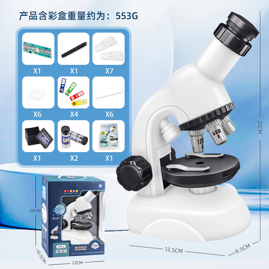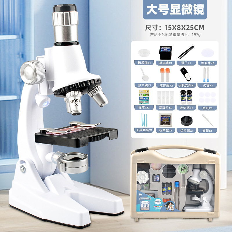 칭바오 어린이 광학 현미경 고화질 1200 회 관측 확대 초등 및 중등 학교 학생의 과학 실험 세트 장난감