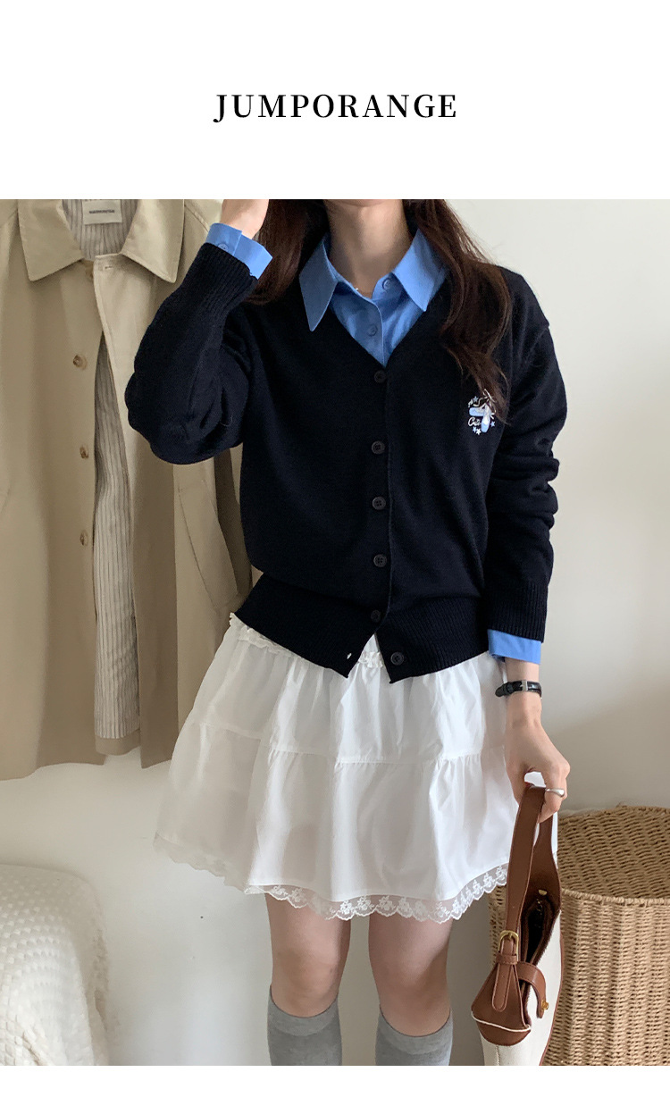 웨이 송 한국 스타일 대학 스타일 긴 소매 스웨터 여성의 가을 새로운 올 매치 캐주얼 어깨 V-넥 카디건 탑스토어 가기