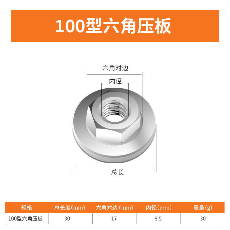 100 앵글 그라인더 플래튼 그라인더 렌치 연마 기계 고정물 선 육각 너트 부목 범용 액세서리