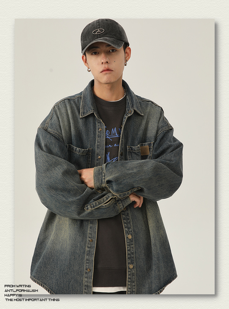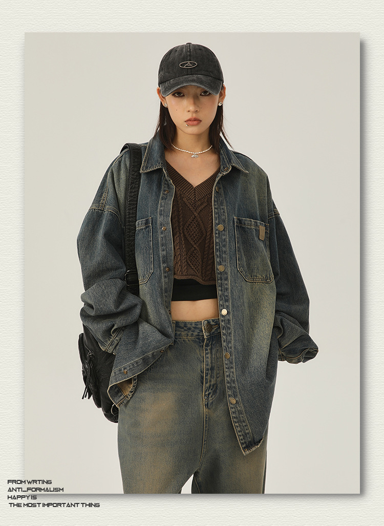 미국 하이 스트리트 패션 브랜드 데님 셔츠 재킷 여성의 2024 봄과 가을 새로운 느슨한 작업복 긴 소매 셔츠 재킷스토어 가기