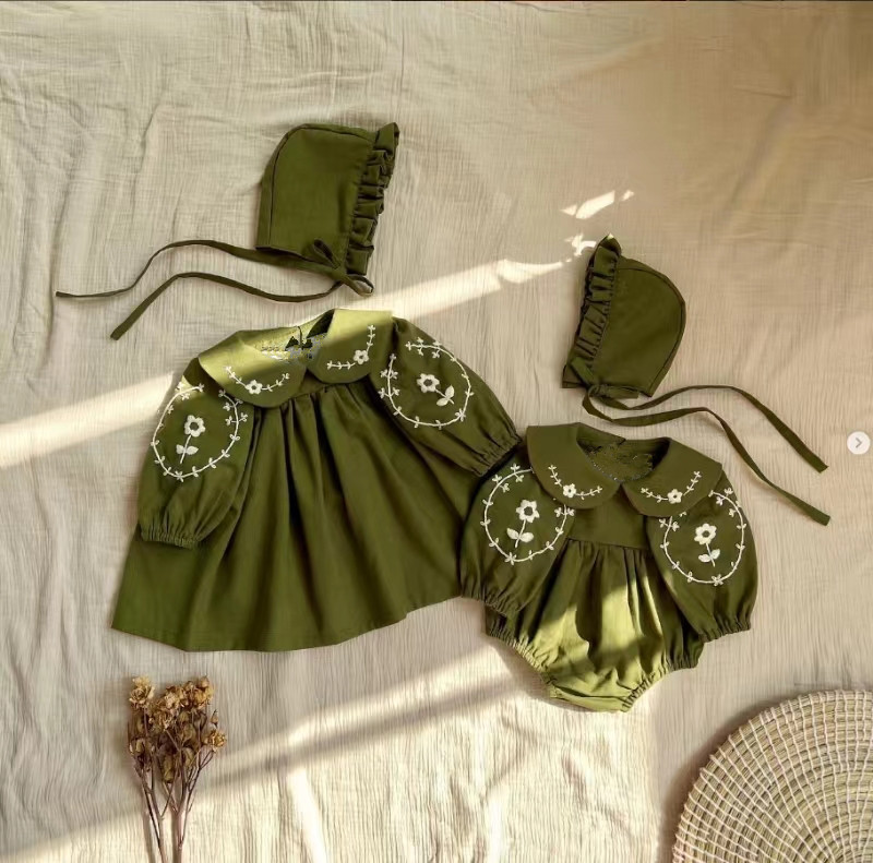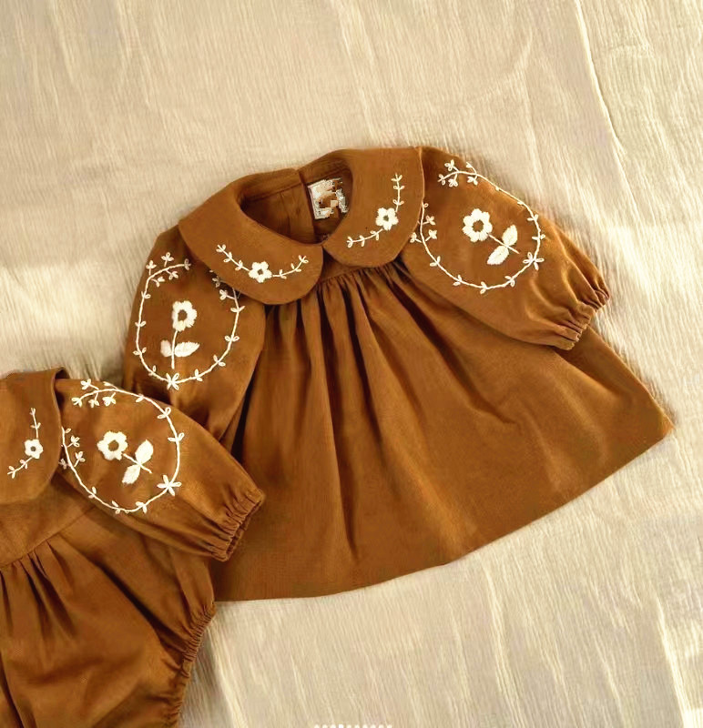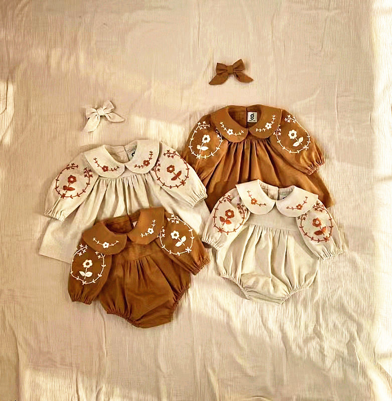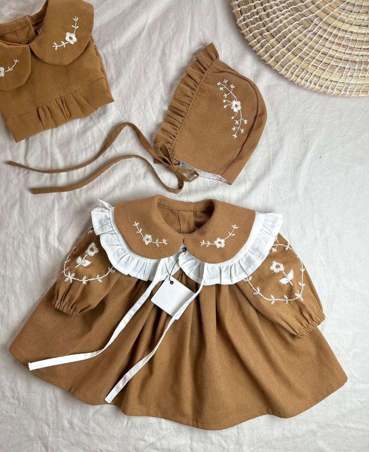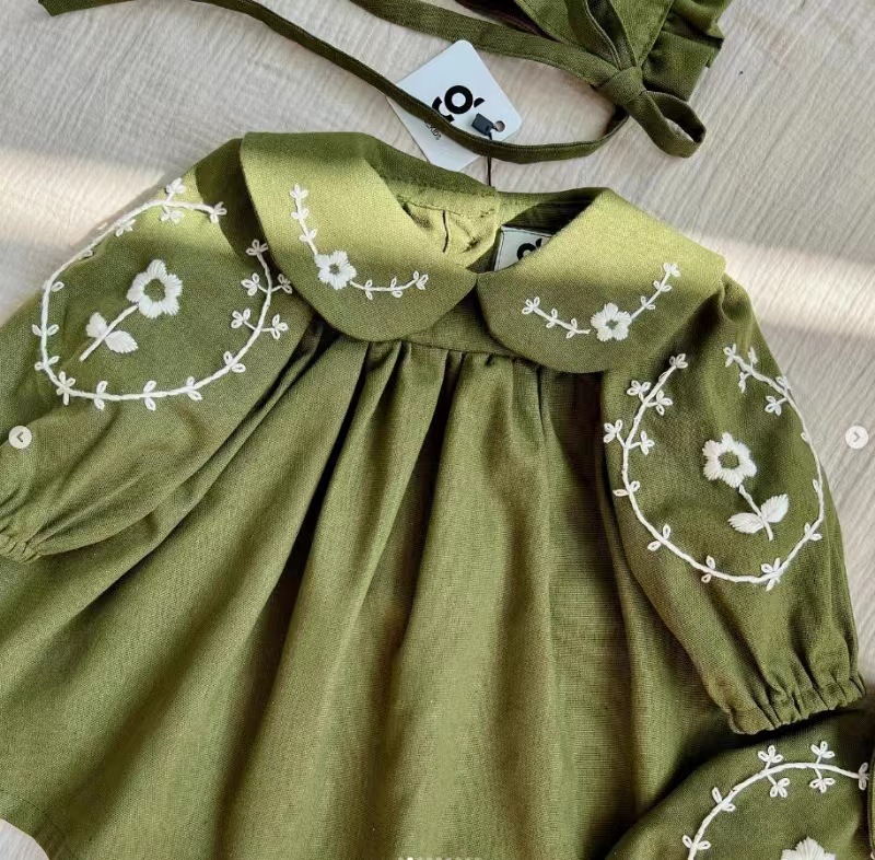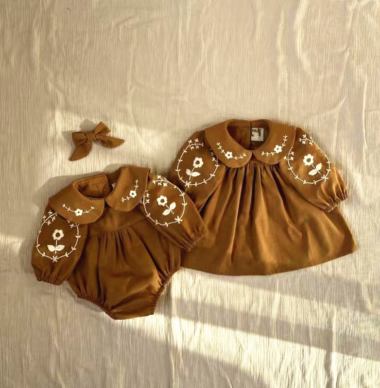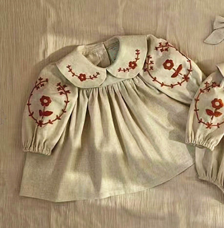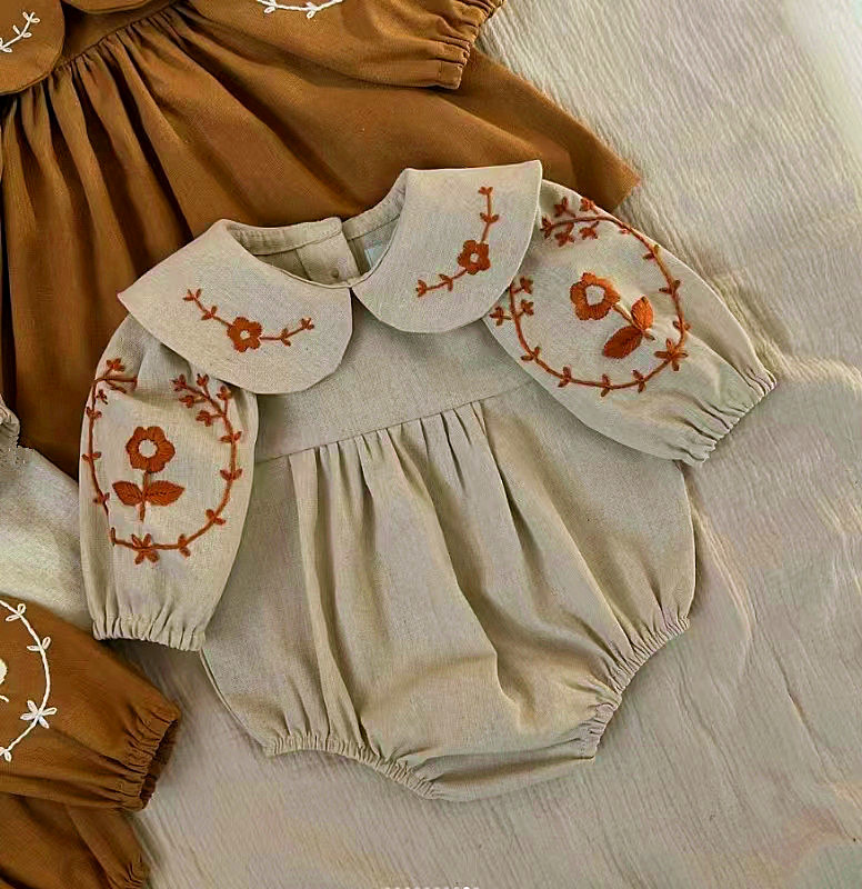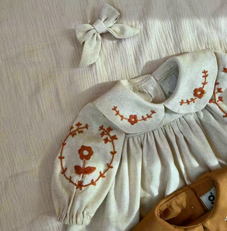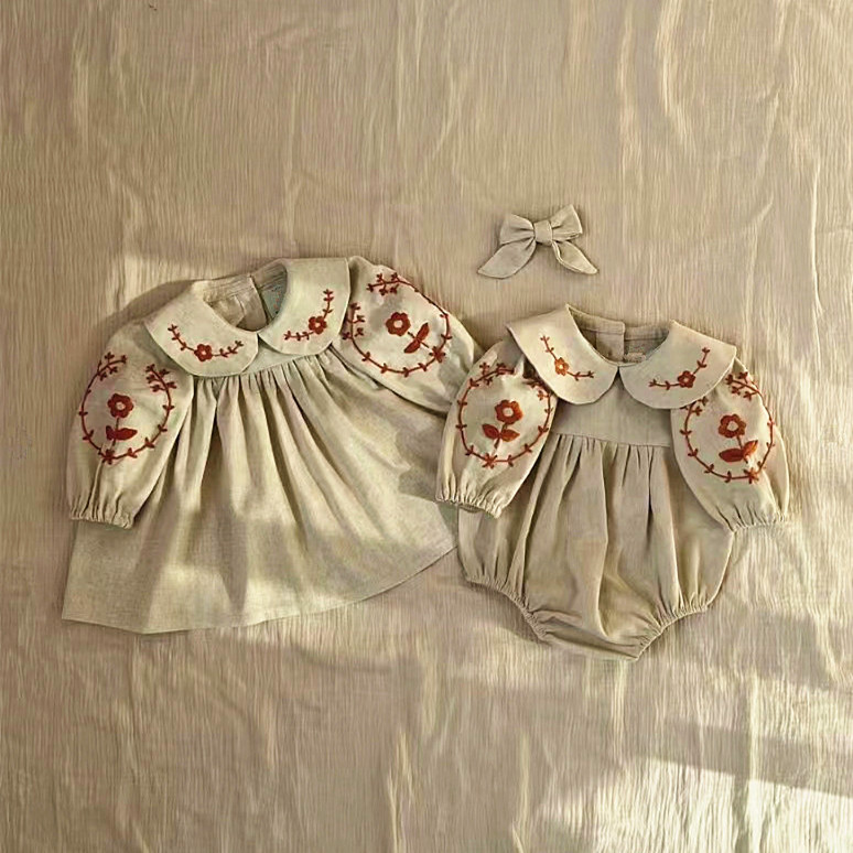 여자 가을 겨울 원피스 면 린넨 긴 소매 공주 원피스 인 수제 인형 원피스 아기 옷