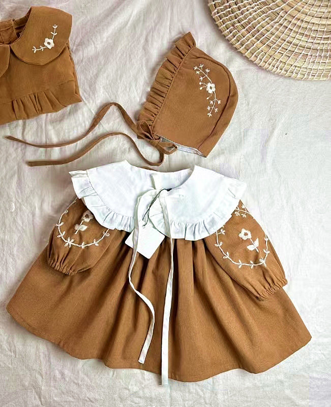 여자 가을 겨울 원피스 면 린넨 긴 소매 공주 원피스 인 수제 인형 원피스 아기 옷스토어 가기