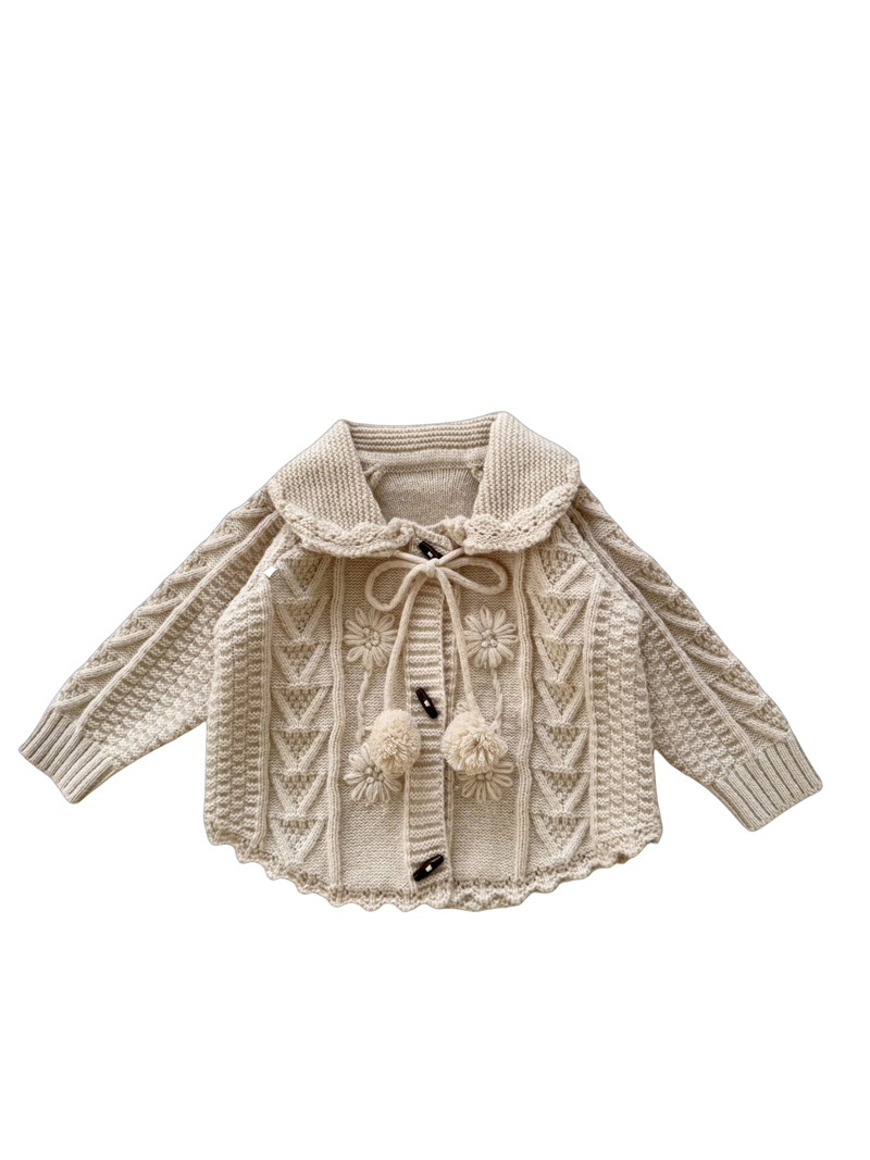 2024 가을과 겨울 새로운 한국 아동복 소녀 후크 옷깃 양모 공 카디건 어린이 한국 스웨터 그물 빨간 아동복스토어 가기