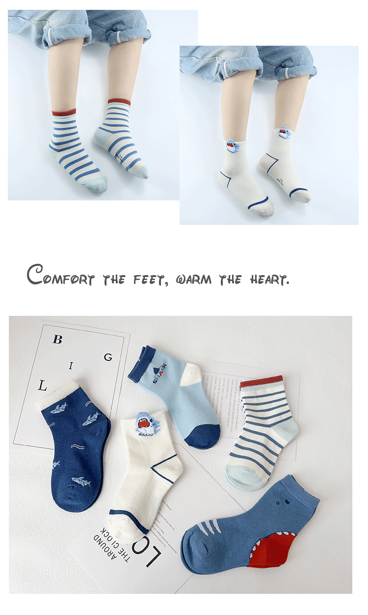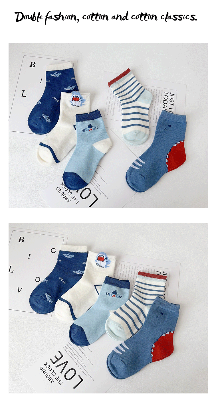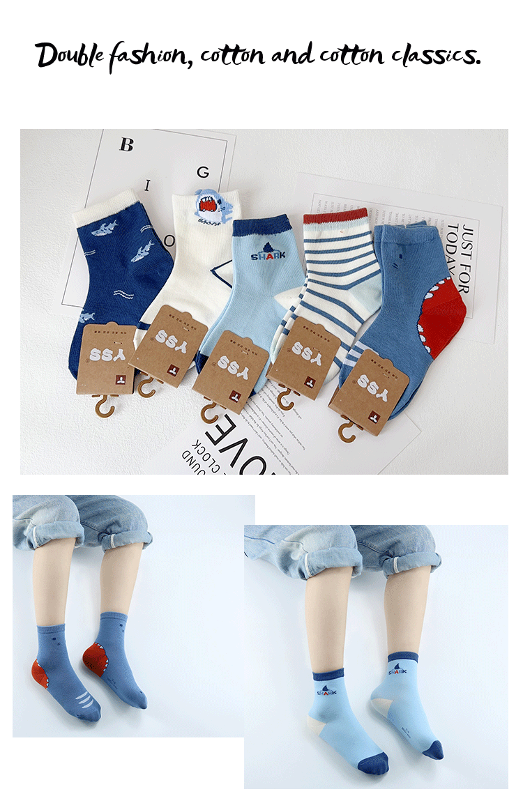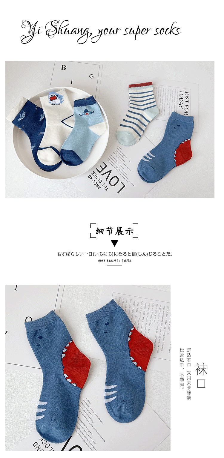 이순이 한 쌍의 어린이 양말 가을과 겨울 새로운 만화 상어 튜브 양말이 면화 소년과 학생 양말 뼈없는 어린이 양말스토어 가기