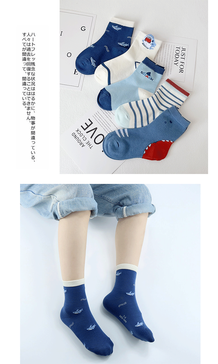 이순이 한 쌍의 어린이 양말 가을과 겨울 새로운 만화 상어 튜브 양말이 면화 소년과 학생 양말 뼈없는 어린이 양말