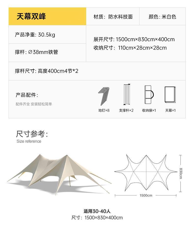 야외 문어 거대 삼봉 캐노피 캠핑 캠핑 상업용 텐트 Wanzhongshan Genting Double Peak 캐노피스토어 가기