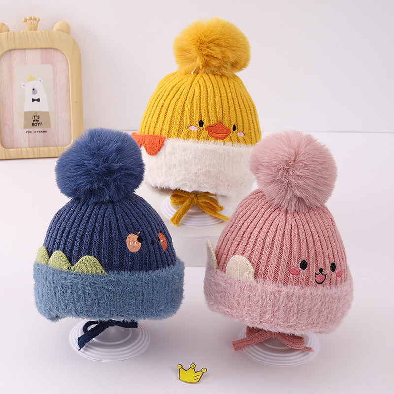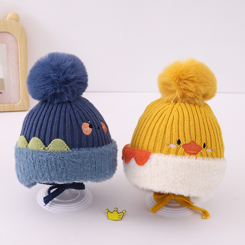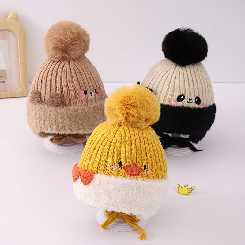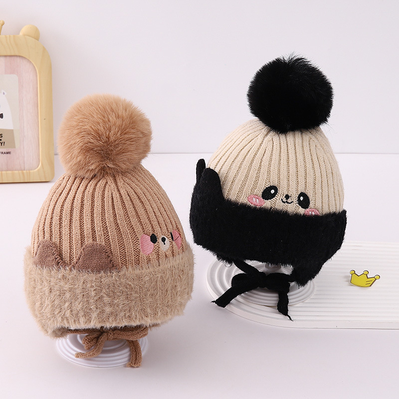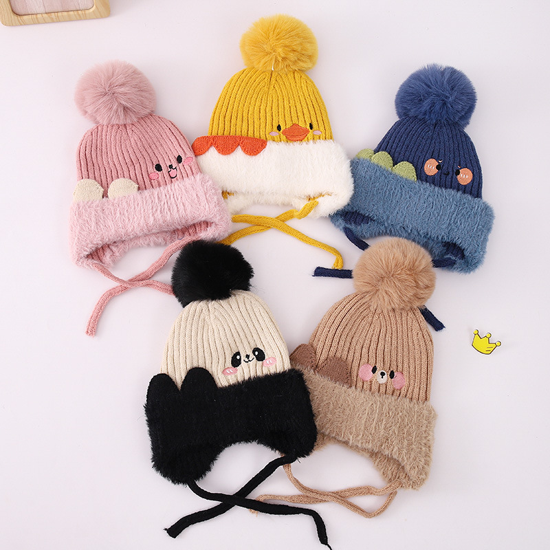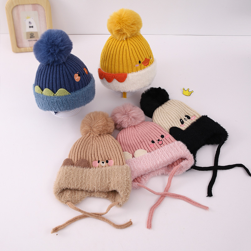 아기 모자 가을과 겨울 남자의 보물 만화 귀 보호 모자 아기 니트 모자 겨울 아기 겨울 어린이 소녀