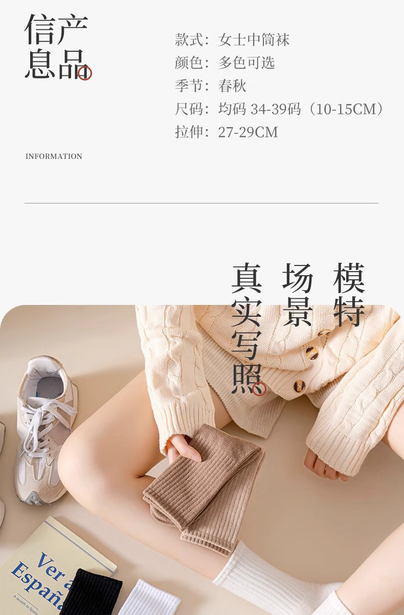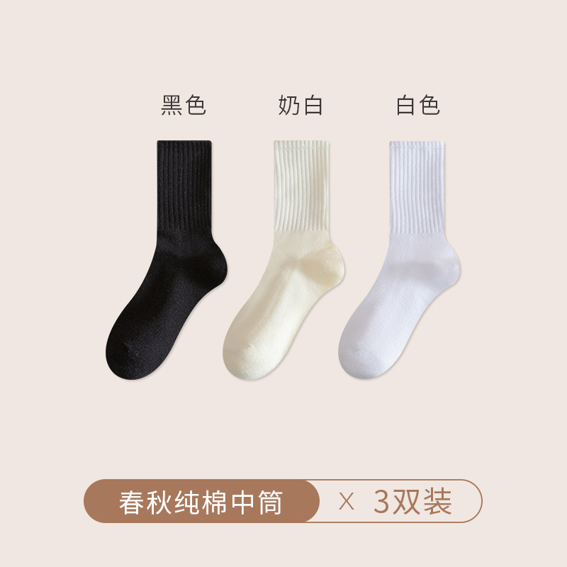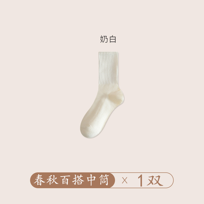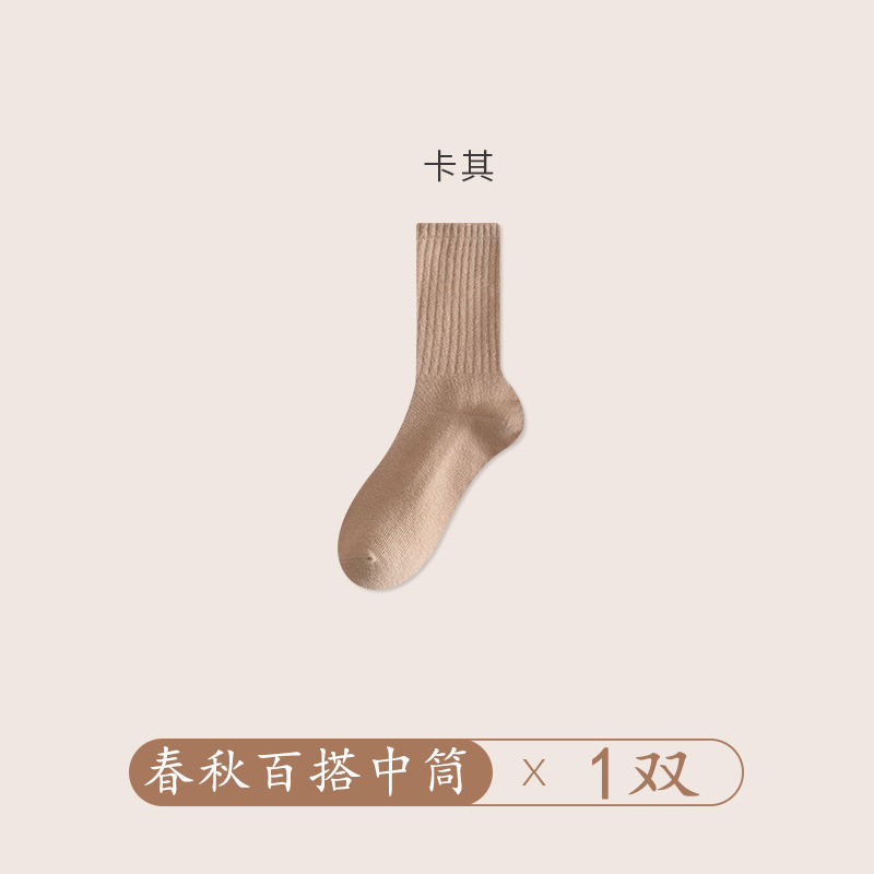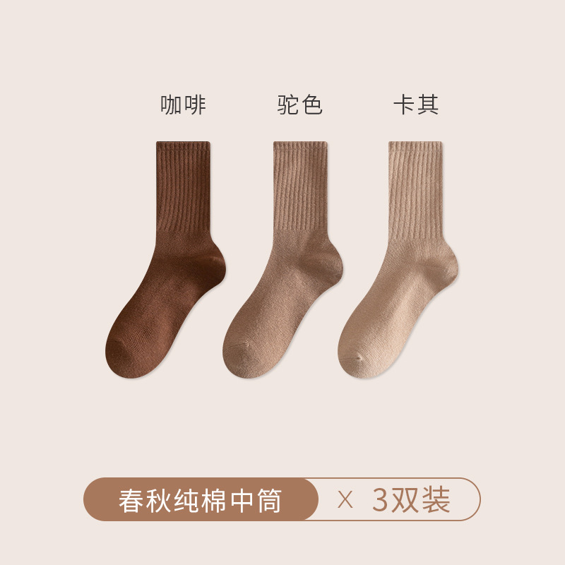 양말 여성의 가을 및 겨울 중간 길이 양말 탈취제 땀 흡수 스태킹 양말 솔리드 컬러 올 매치 다크 브라운 Maillard 스타일 롱 양말스토어 가기