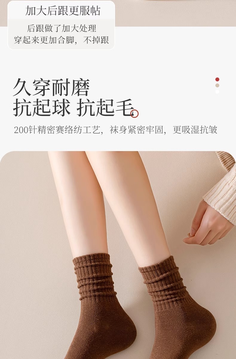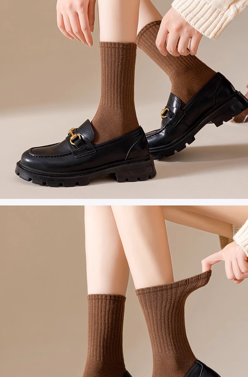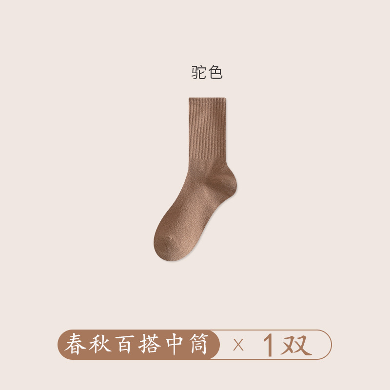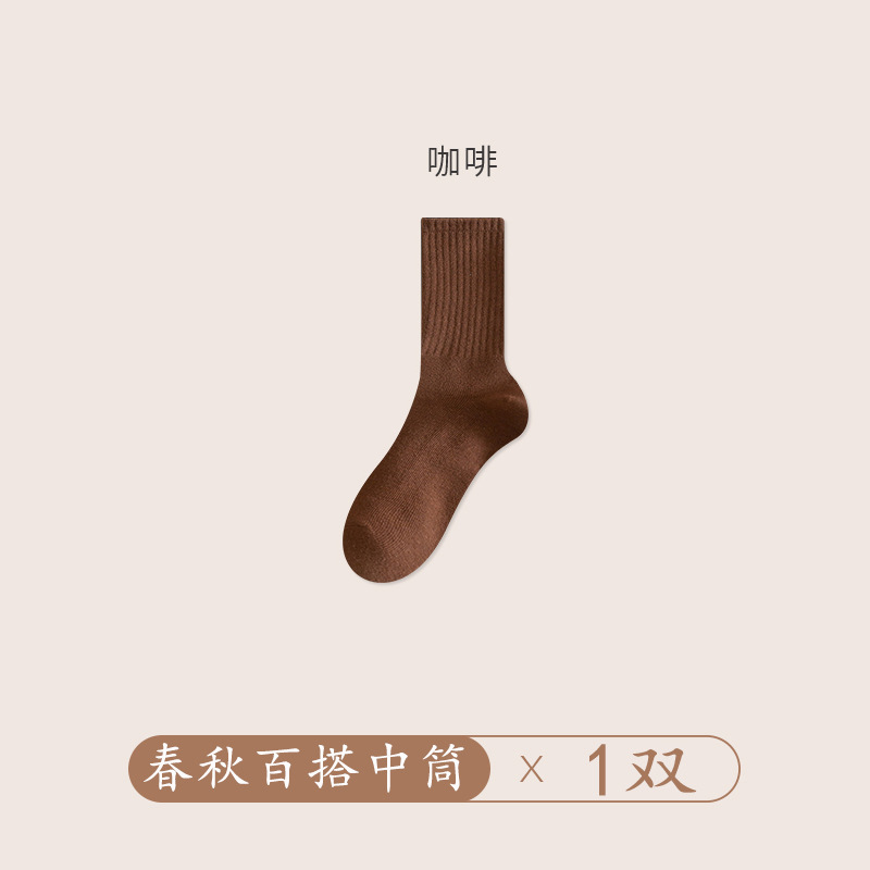 양말 여성의 가을 및 겨울 중간 길이 양말 탈취제 땀 흡수 스태킹 양말 솔리드 컬러 올 매치 다크 브라운 Maillard 스타일 롱 양말