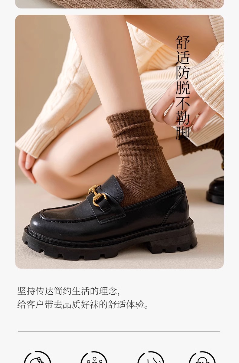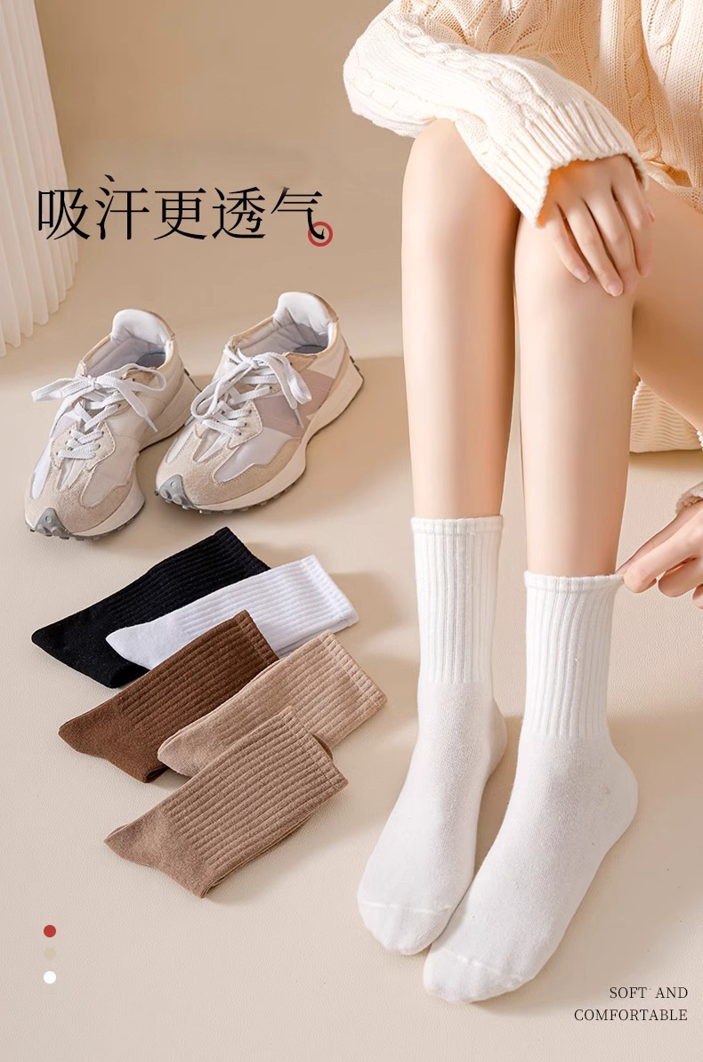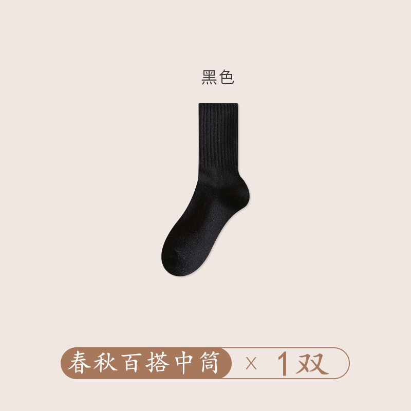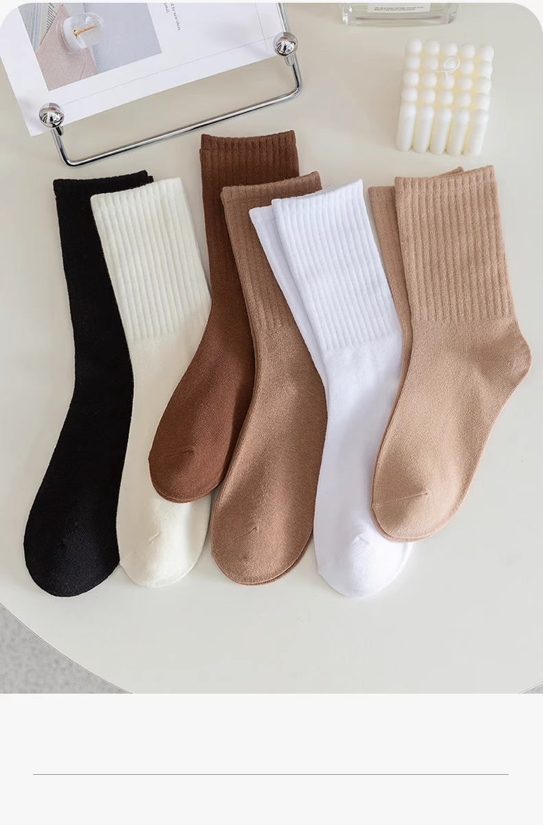 양말 여성의 가을 및 겨울 중간 길이 양말 탈취제 땀 흡수 스태킹 양말 솔리드 컬러 올 매치 다크 브라운 Maillard 스타일 롱 양말