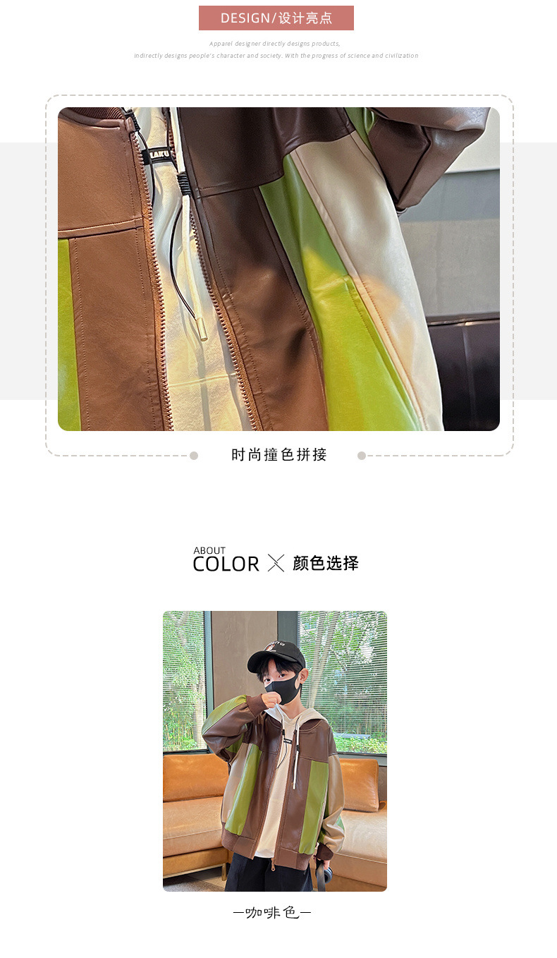 남학생 가죽 코트 가을과 겨울 코트 다크 브라운 바느질 서양식 루피아 핸섬 오토바이 가죽 자켓 소년 중 및 빅 키즈 야구 세트스토어 가기