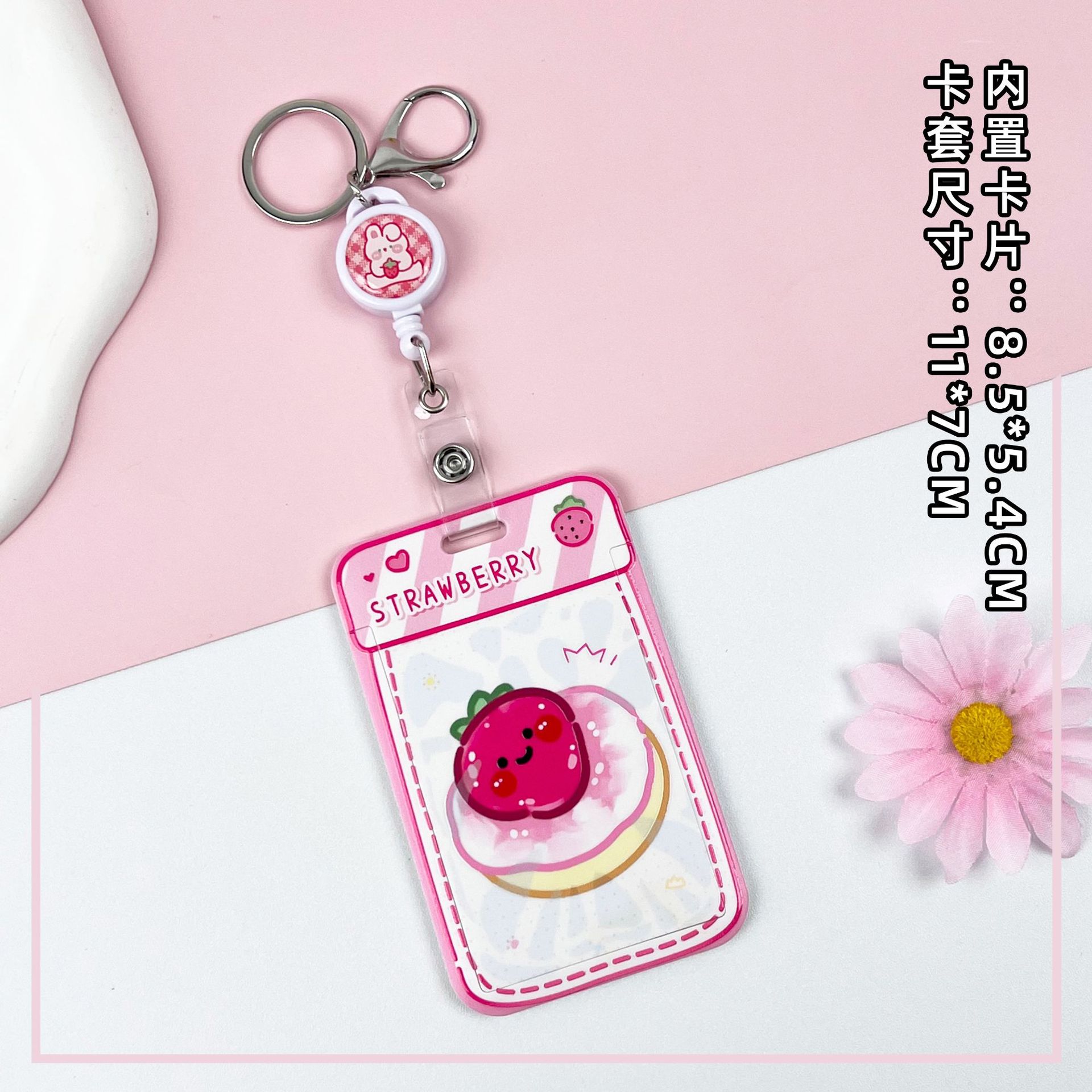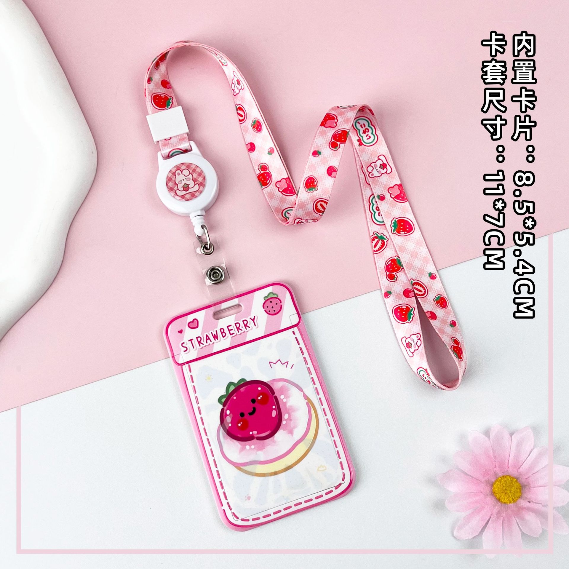 • 핑크 요거트 케이크 + 체크무늬 딸기 토끼 텔레스코픽 롱 로프 (딸기 토끼)
