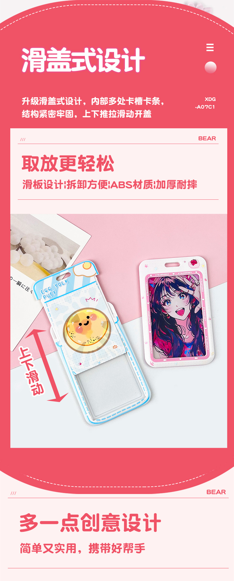 귀여운 ABS 만화 카드 홀더 학생 학교 카드 가슴 카드 액세스 카드 홀더 재고 슬라이드 반투명 보호 커버 남성과 여성