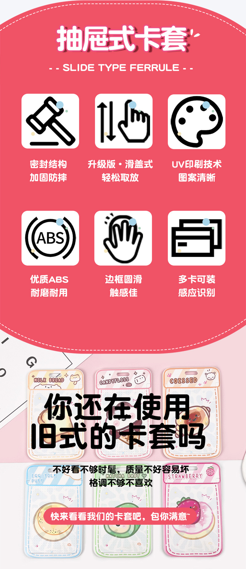 귀여운 ABS 만화 카드 홀더 학생 학교 카드 가슴 카드 액세스 카드 홀더 재고 슬라이드 반투명 보호 커버 남성과 여성스토어 가기