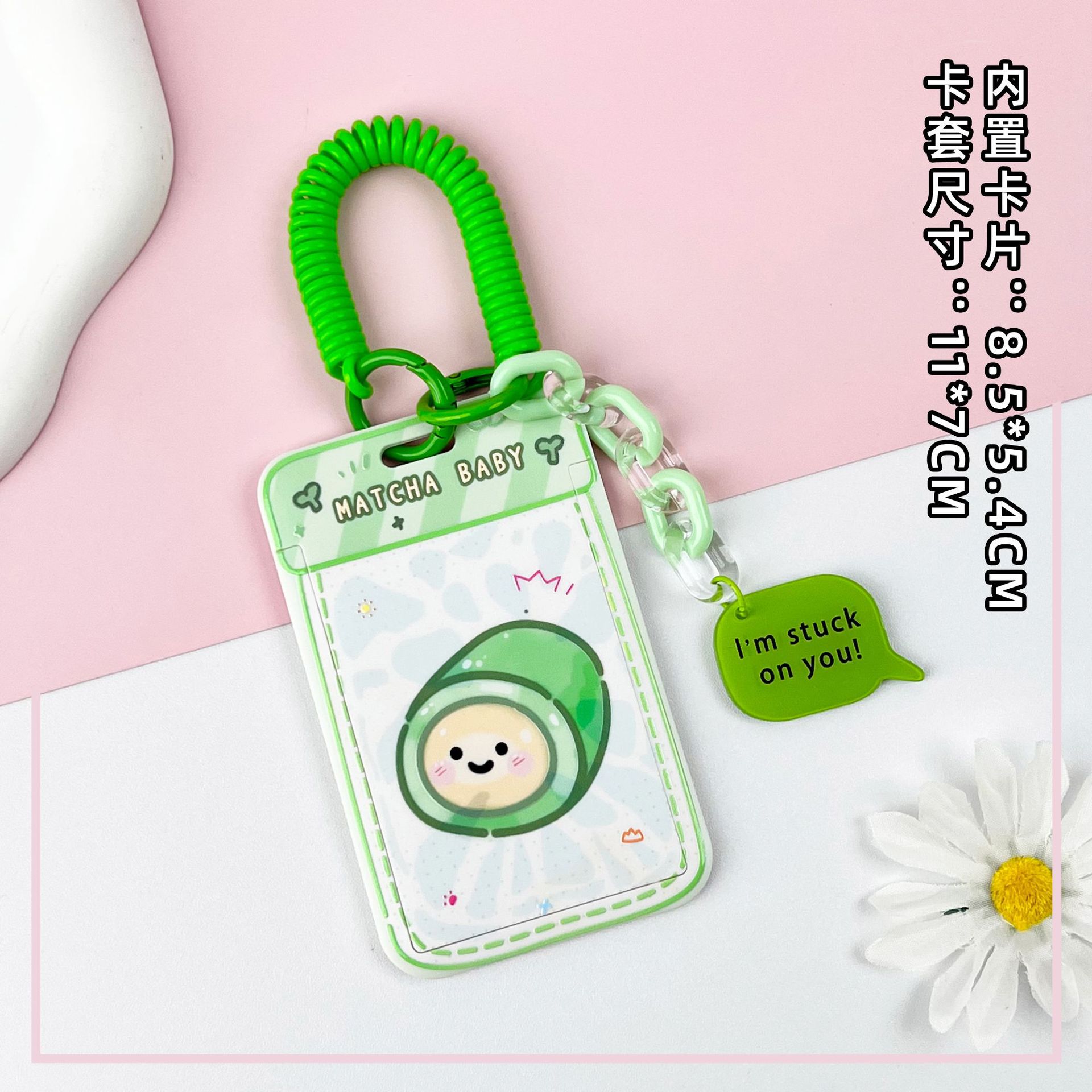 • 녹색 요거트 롤 + 같은 색상의 녹색 이중 원형 스프링 로프 (녹색 체인 + 녹색 영어 아크릴 시트)