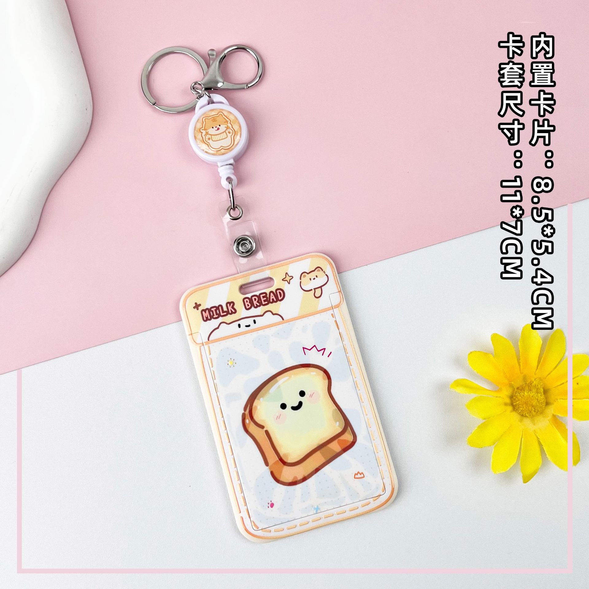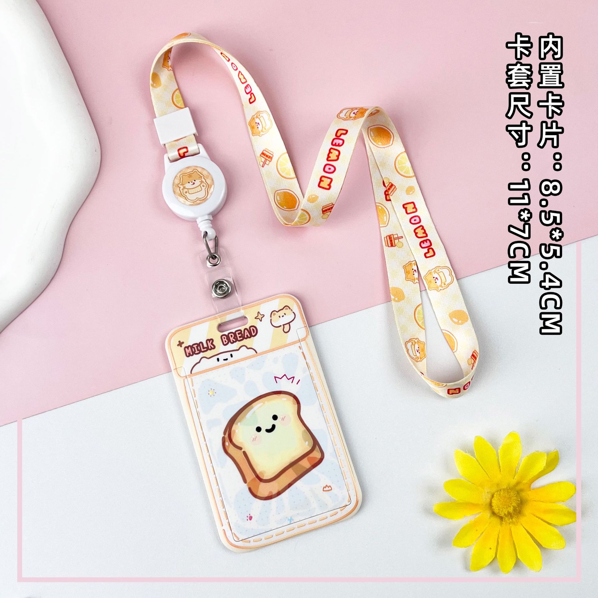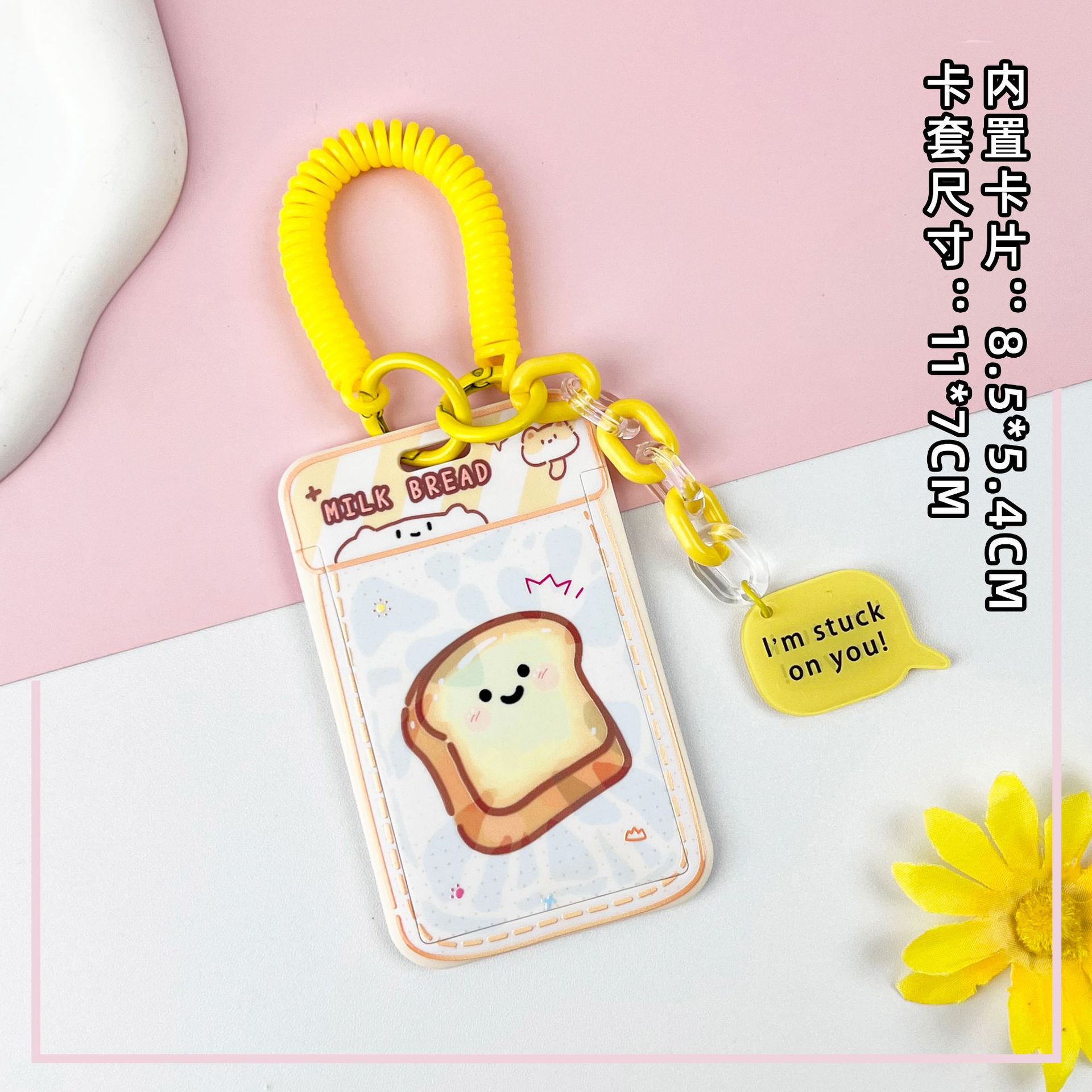 • 노란색 요거트 토스트 + 같은 색상의 노란색 이중 원형 스프링 로프 (노란색 체인 + 노란색 영문 아크릴 시트)