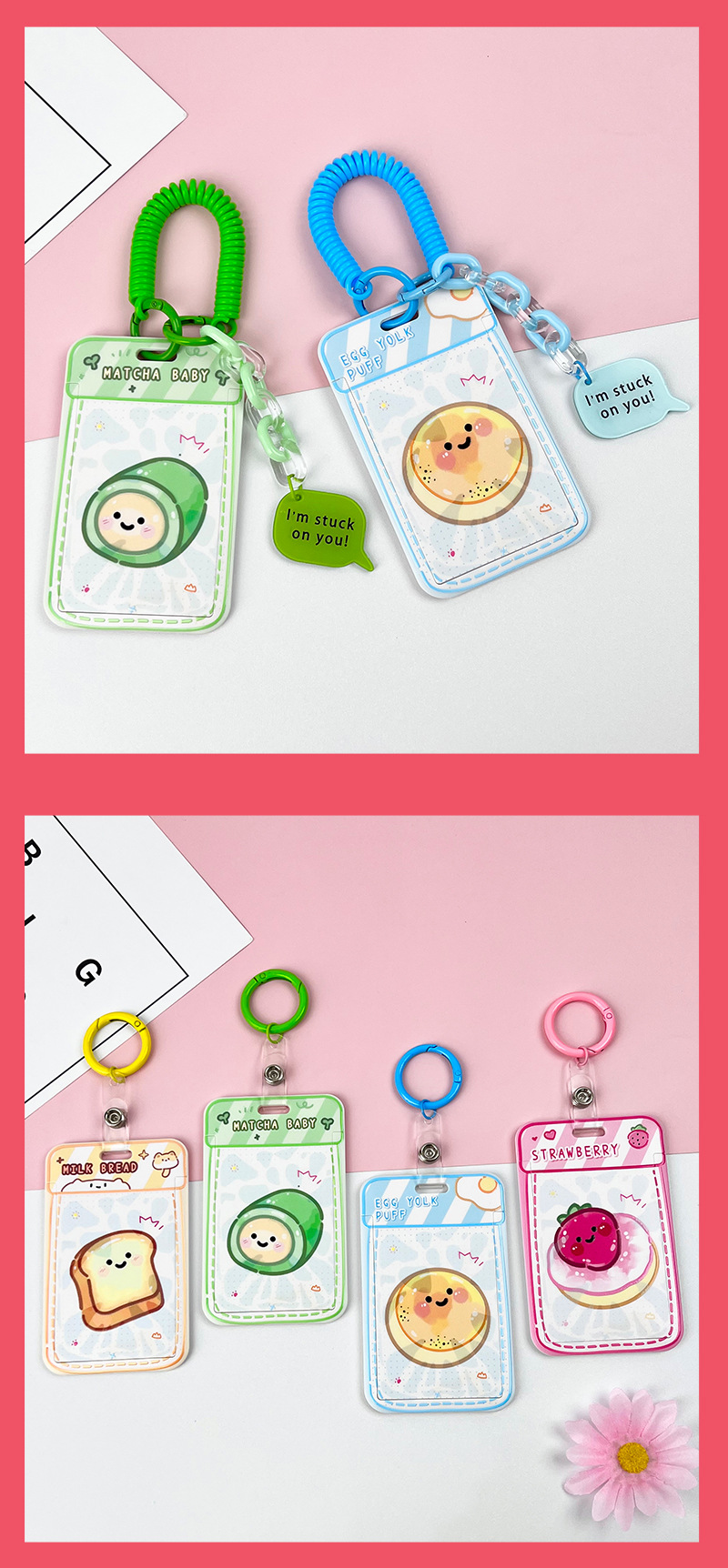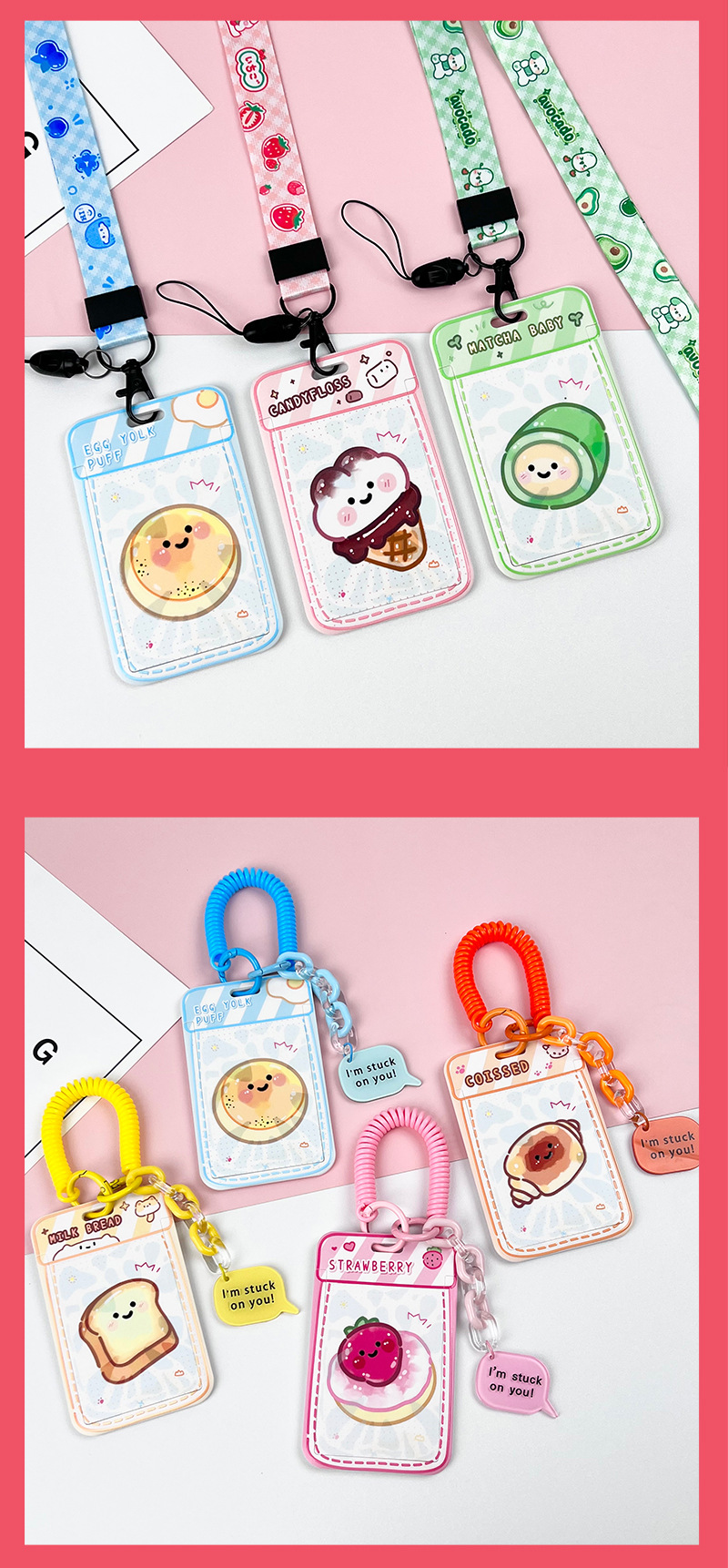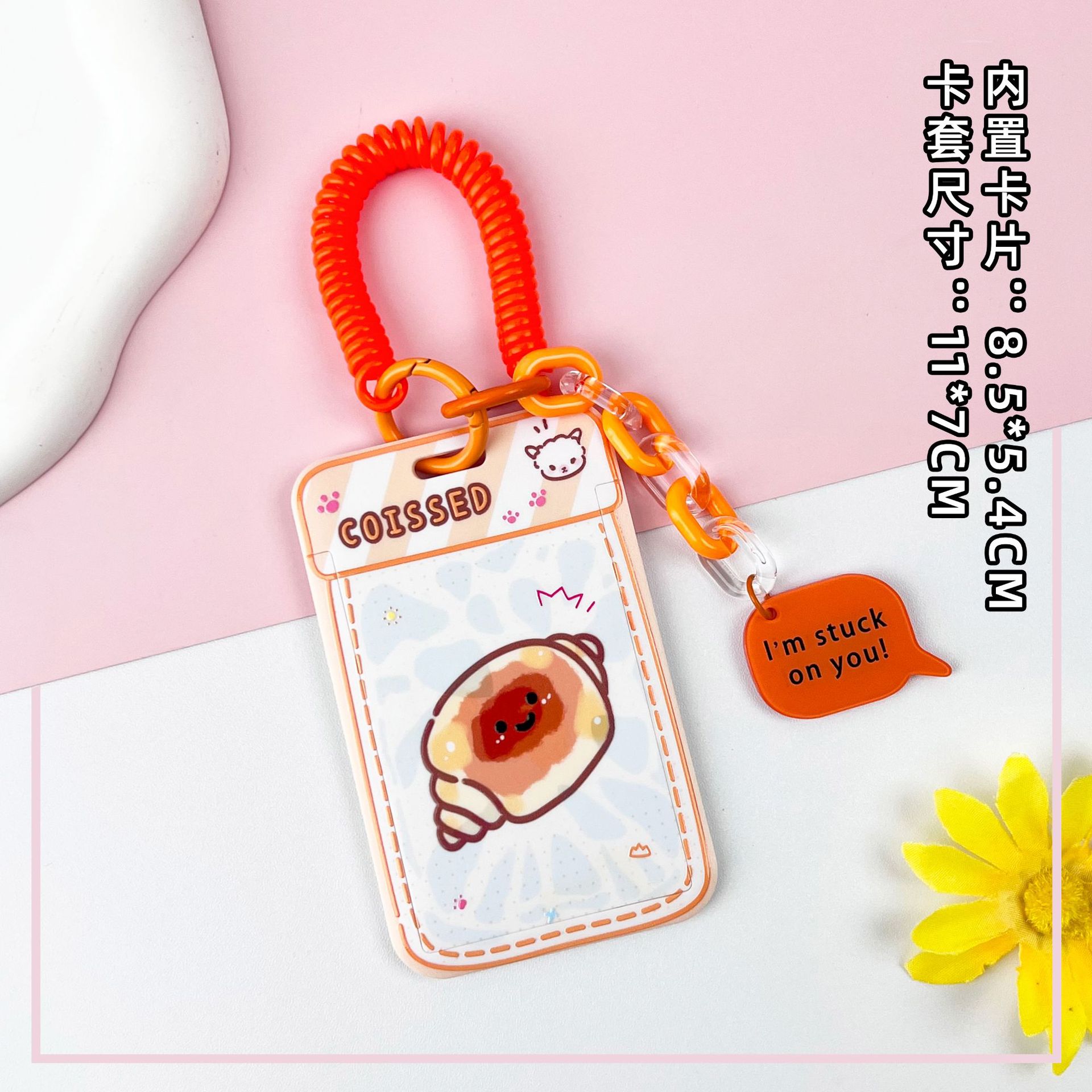 • 노란색 요거트 토스트 + 같은 색상의 노란색 이중 원형 스프링 로프 (노란색 체인 + 노란색 영문 아크릴 시트)