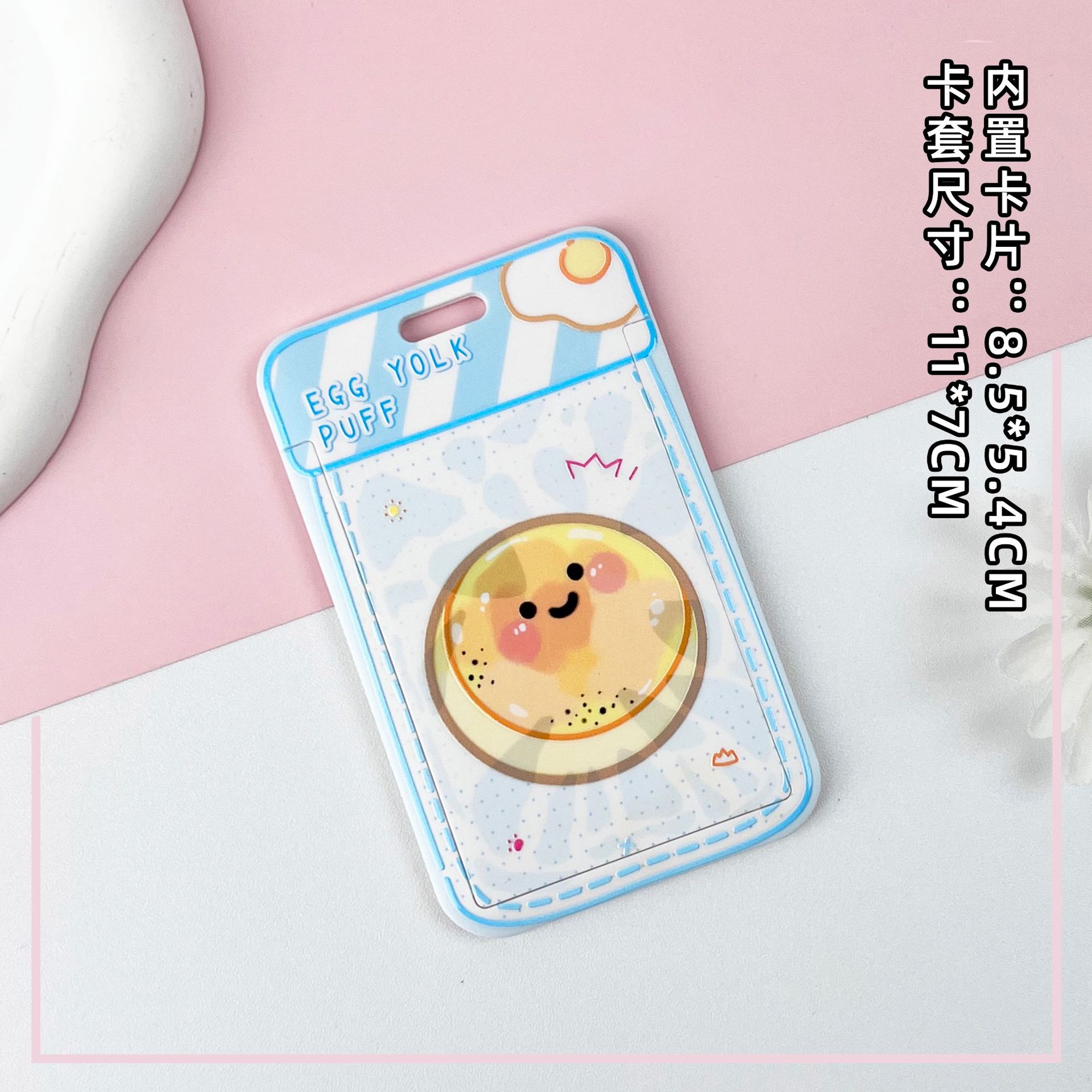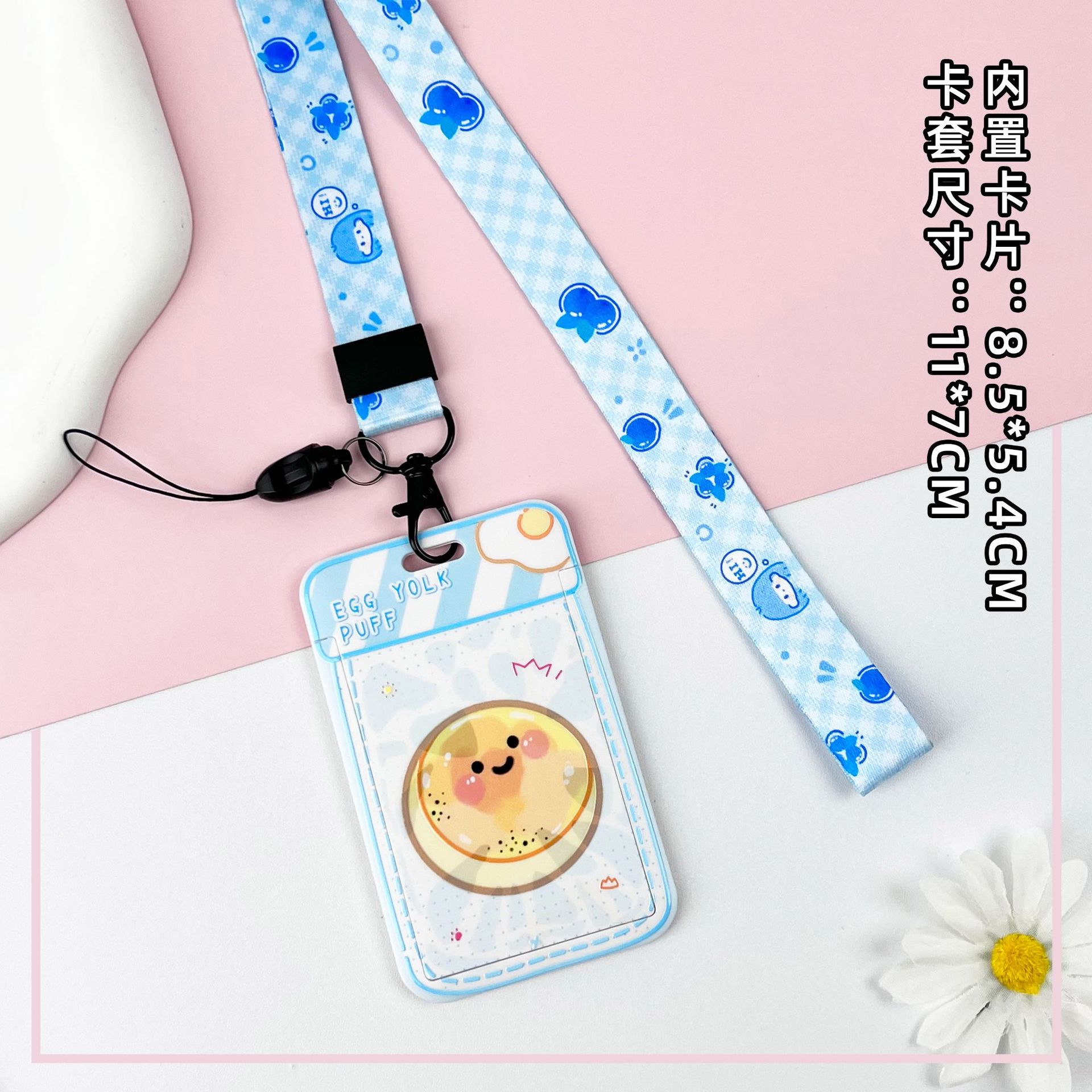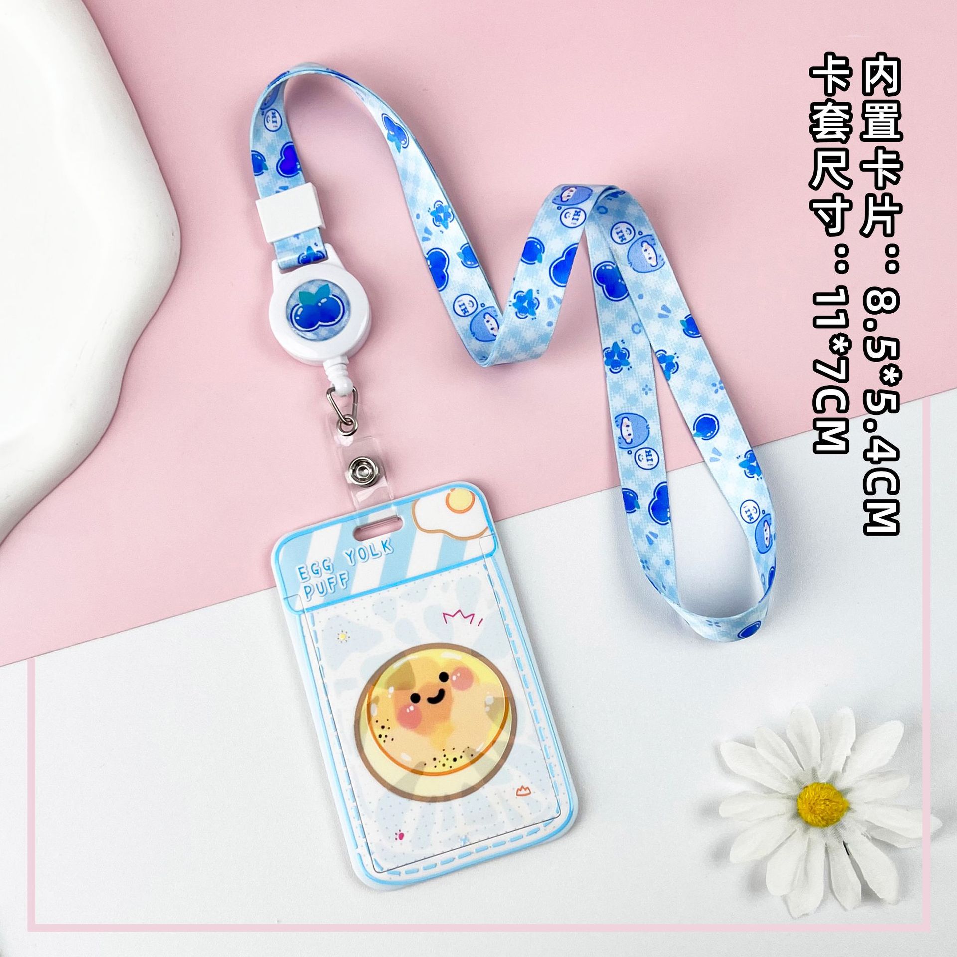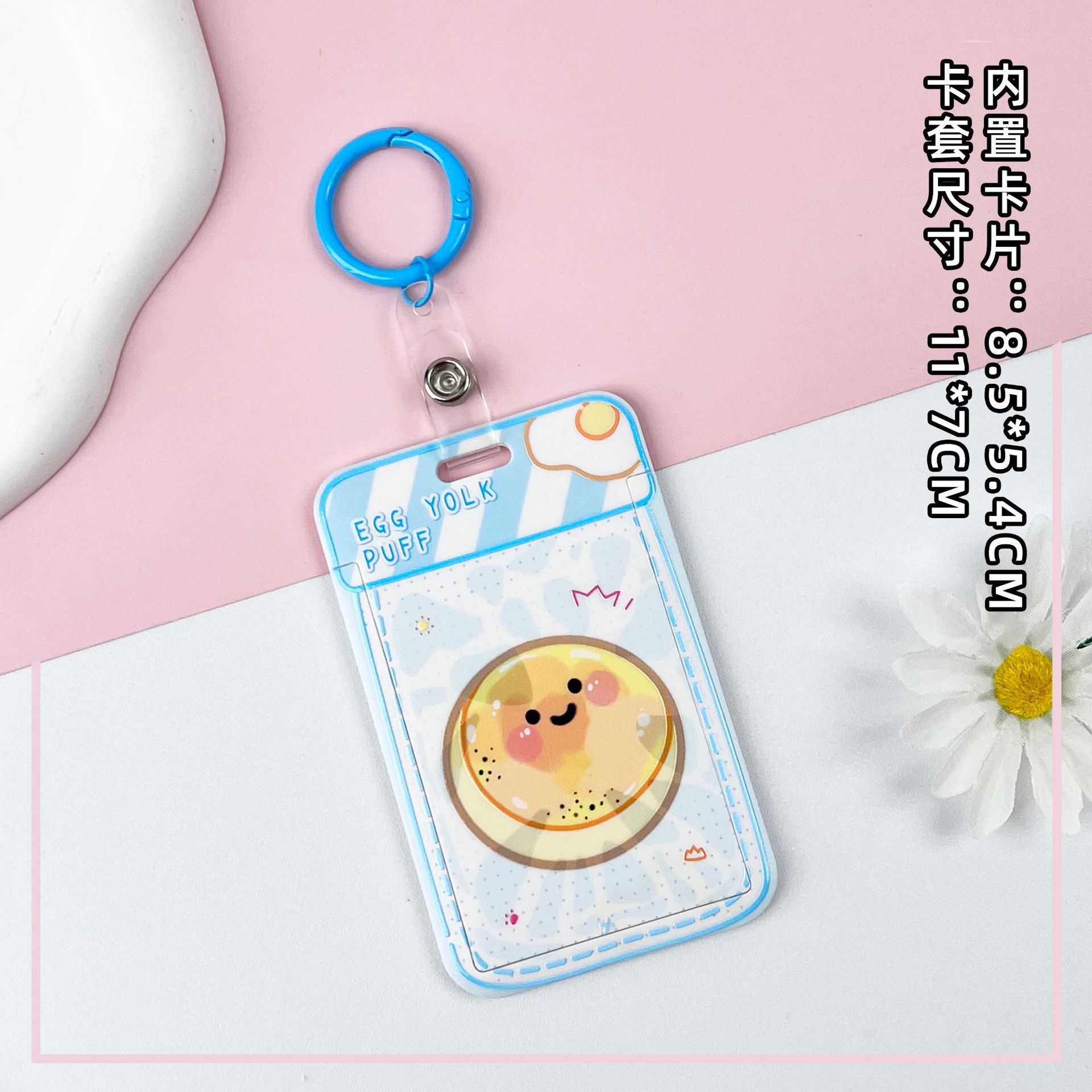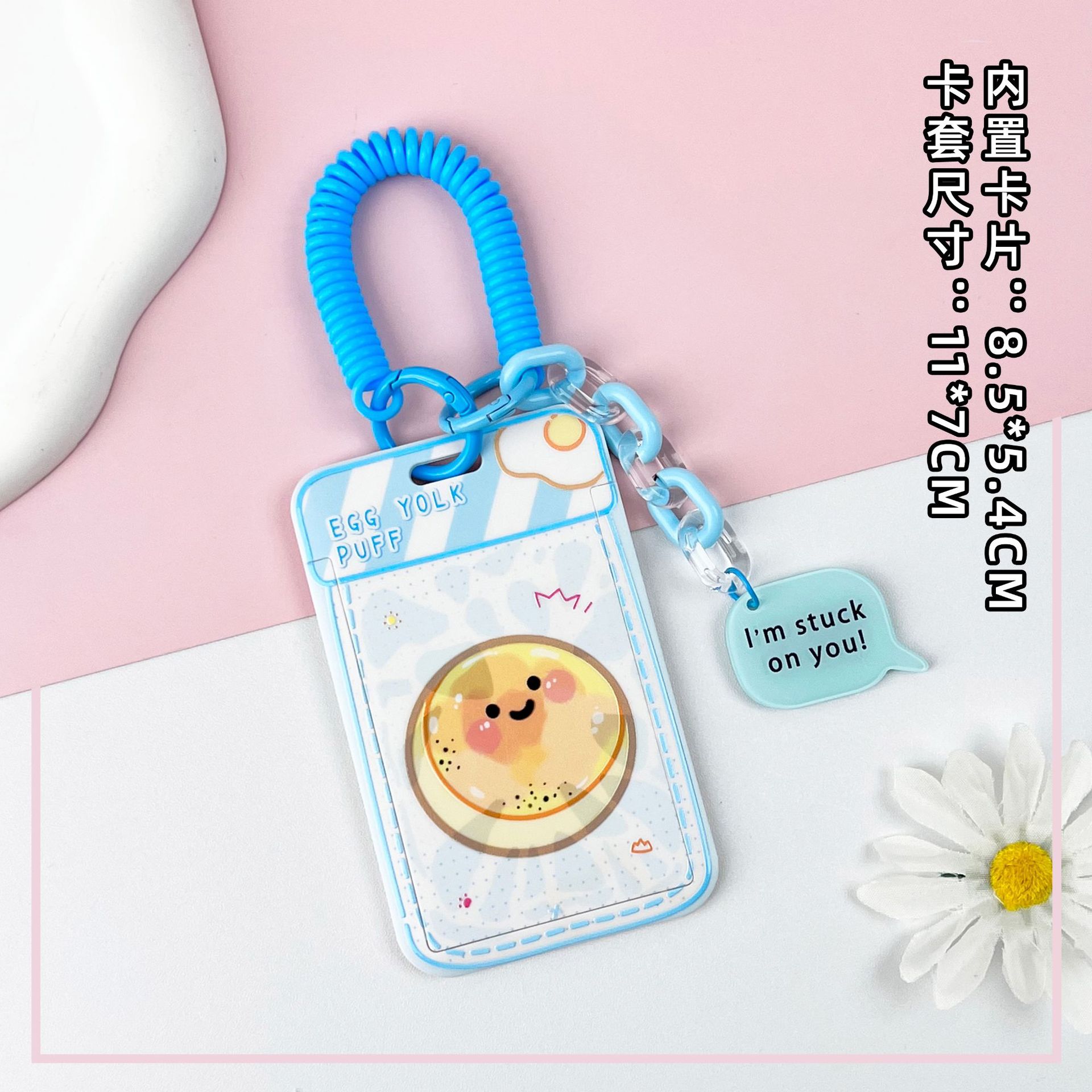 • 블루 요거트 계란 노른자 크리스프 + 같은 색상의 연한 파란색 이중 원형 스프링 로프 (하늘색 체인 + 하늘색 영문 아크릴 시트)