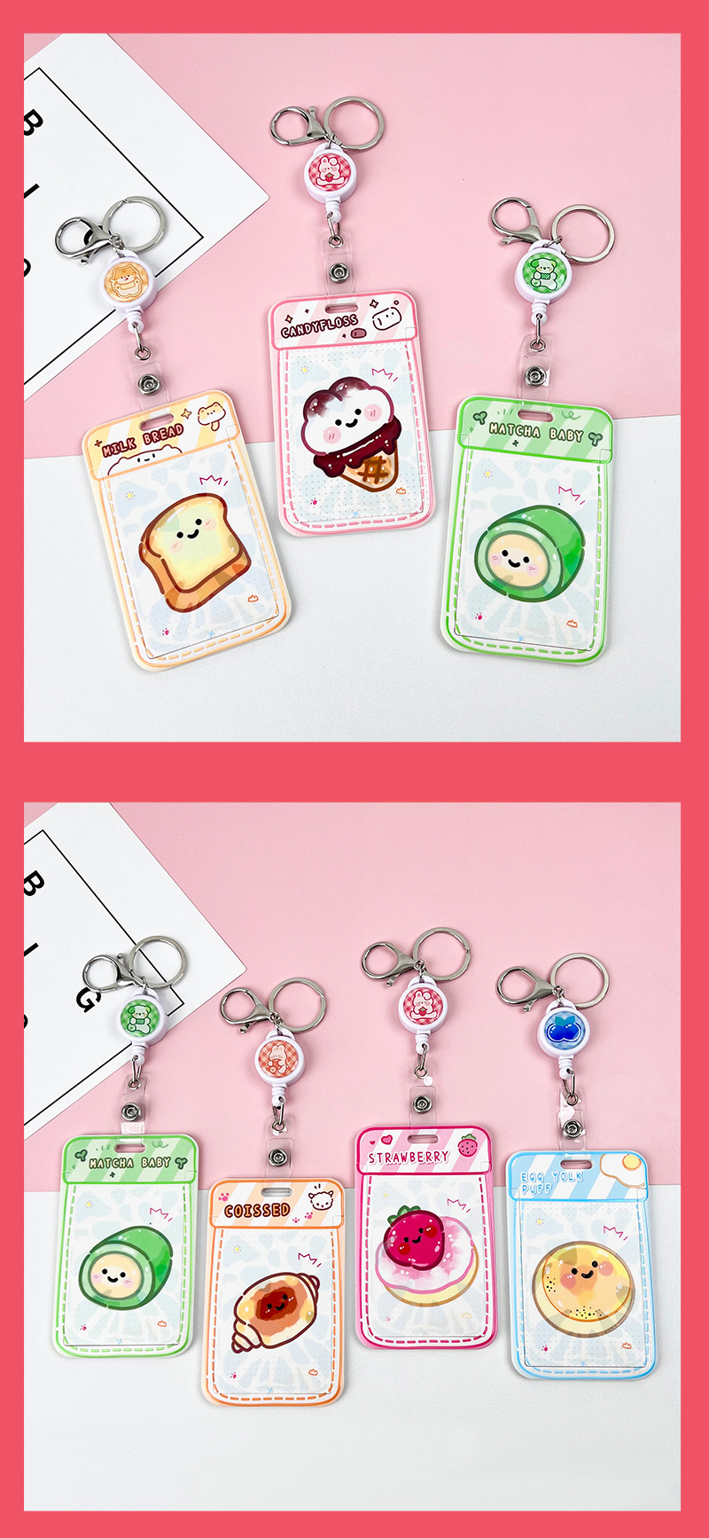 • 핑크 요거트 케이크 + 같은 색상의 핑크 이중 원형 스프링 로프 (핑크 체인 + 핑크 잉글리시 아크릴 시트)
