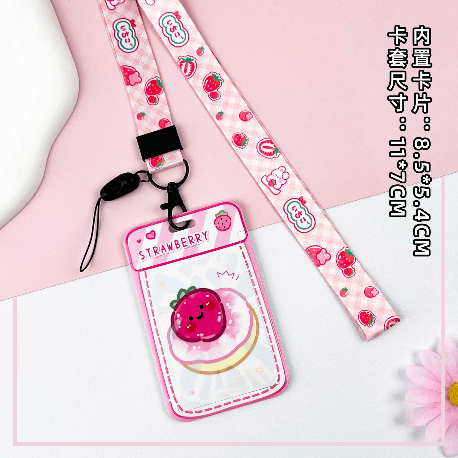 • 핑크 요거트 케이크 + 체크 무늬 딸기 토끼 긴 끈
