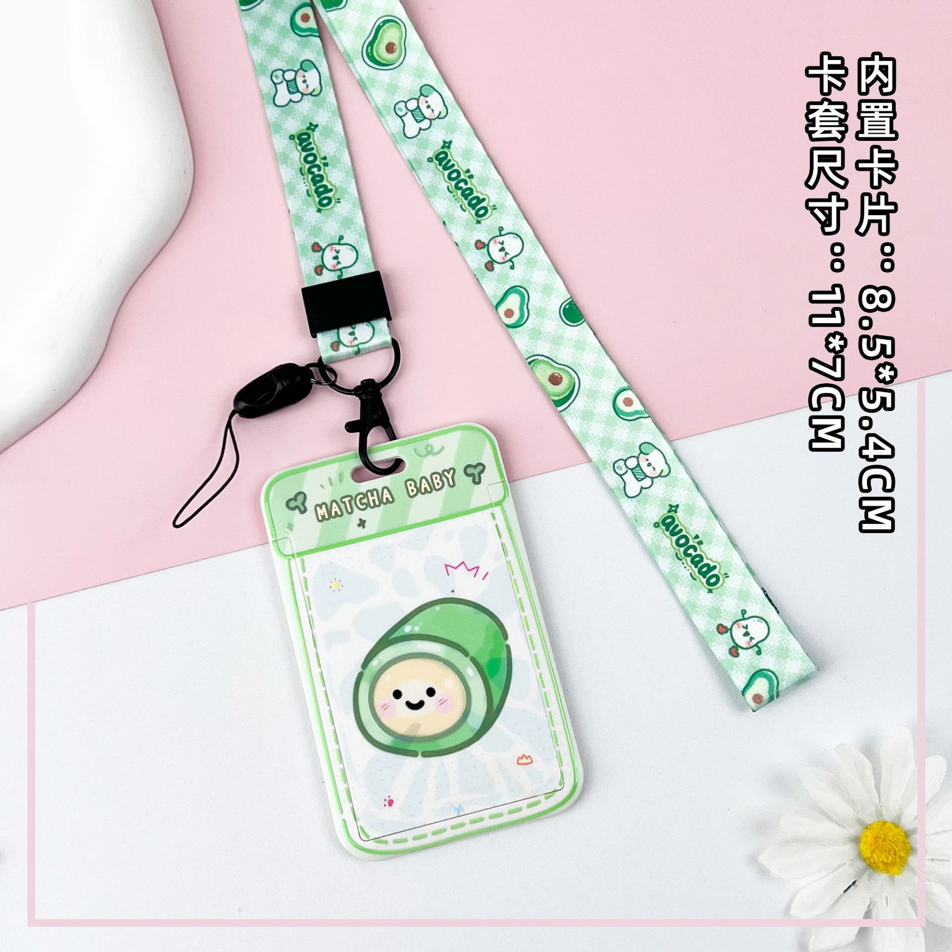 • 그린 요거트 롤빵 + 체크무늬 버터독 텔레스코픽 롱 랜야드(버터독)