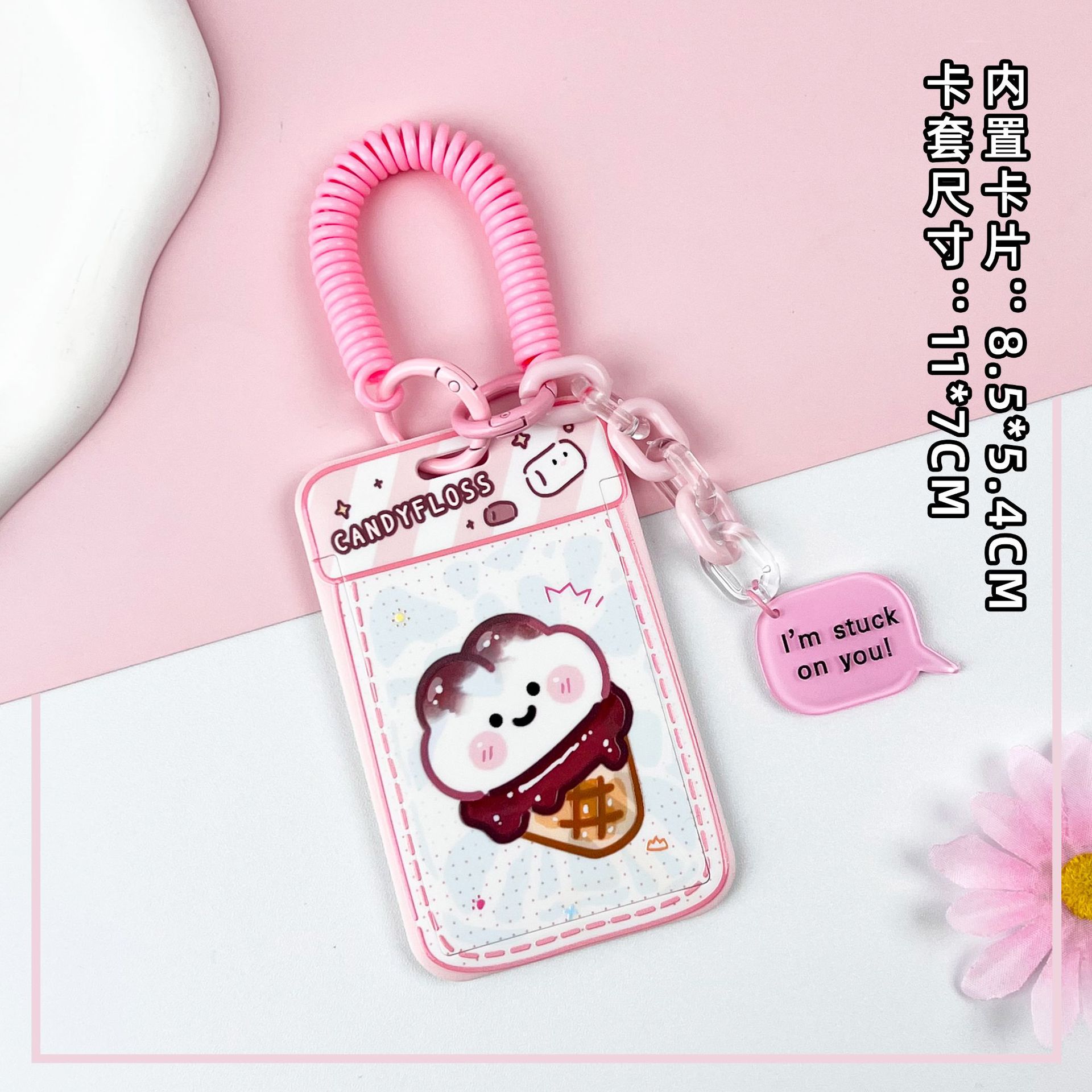 • 라이트 핑크 요거트 콘 + 같은 색상의 핑크 이중 원형 스프링 로프 (핑크 체인 + 핑크 잉글리시 아크릴 시트)