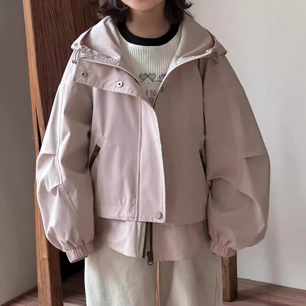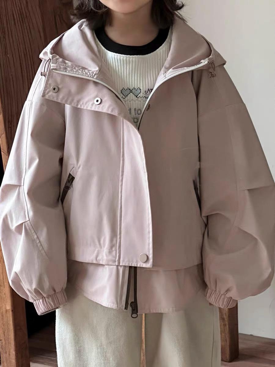 소녀 코트 어린이 충전 의류 후드 재킷 2024 가을 새 스타일 중대형 어린이 방풍 탑 한국 아동복스토어 가기