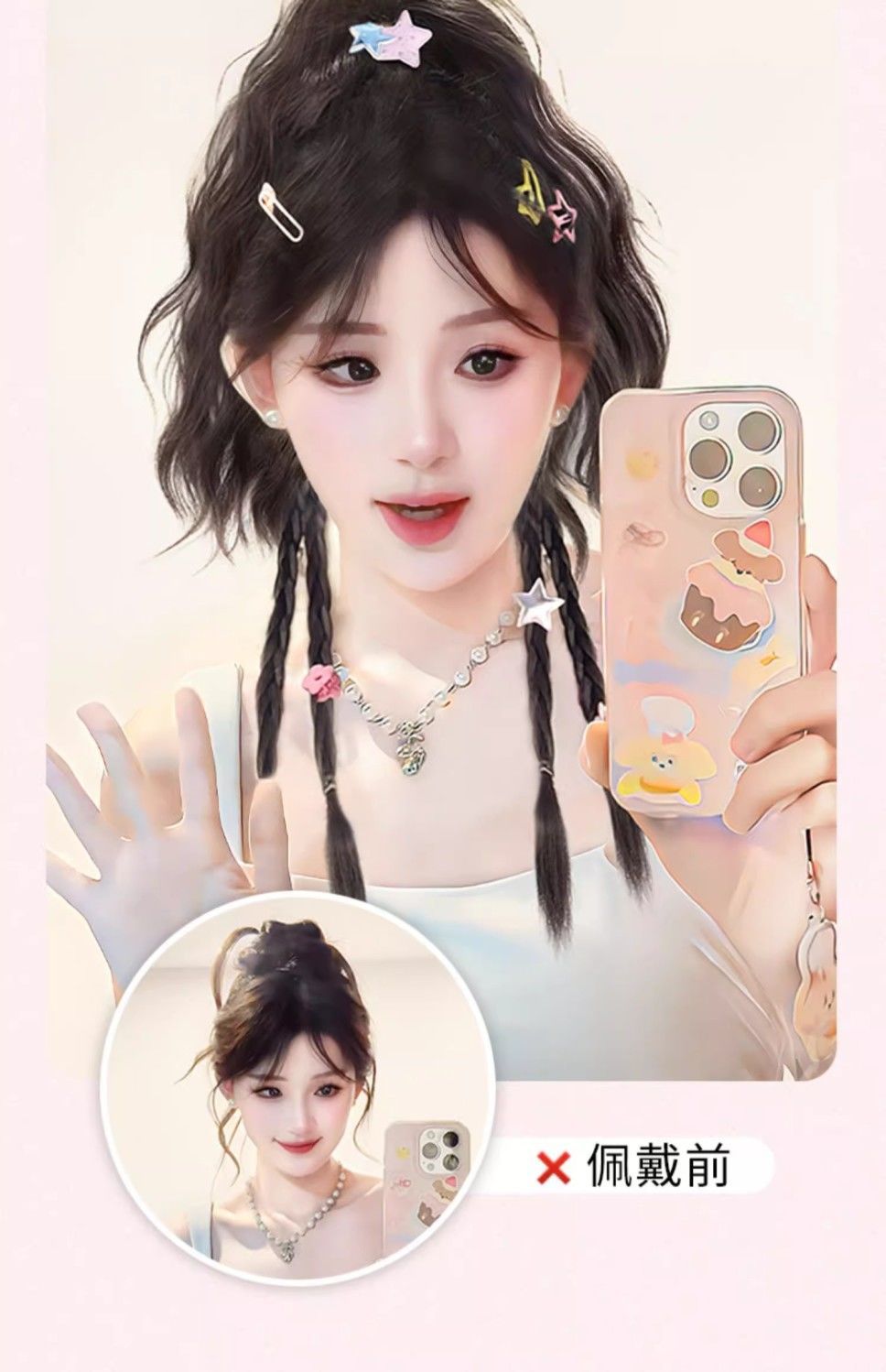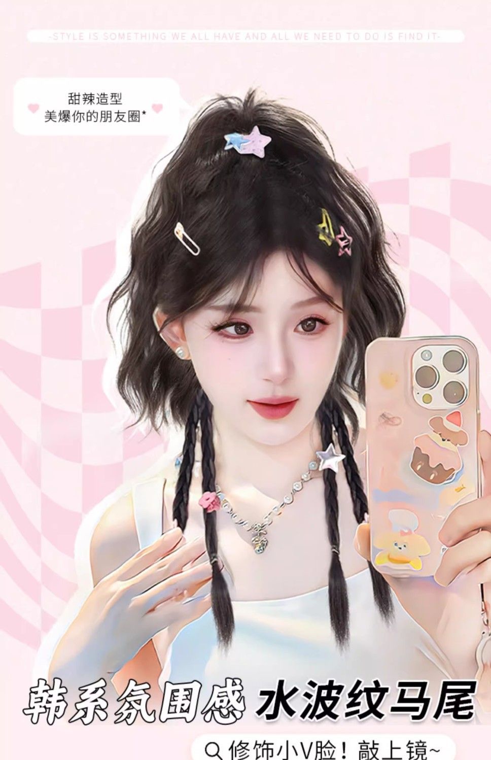 가발 여성용 높은 포니 테일 클램핑 에뮬레이트 헤어 여름 달콤한 쿨 브레이드 폭포 분수 반넥타이 가짜 포니 테일 브레이크