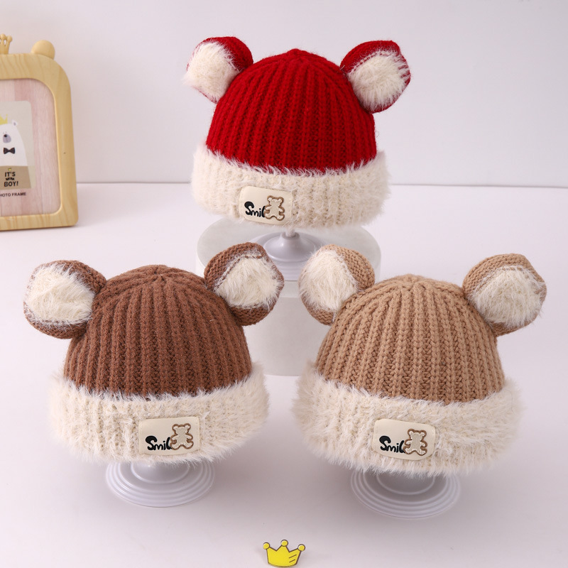 가을과 겨울 어린이 울 모자 소녀의 따뜻한 방풍 소년의 귀 보호 캡 아기 아기 귀여운 니트 모자