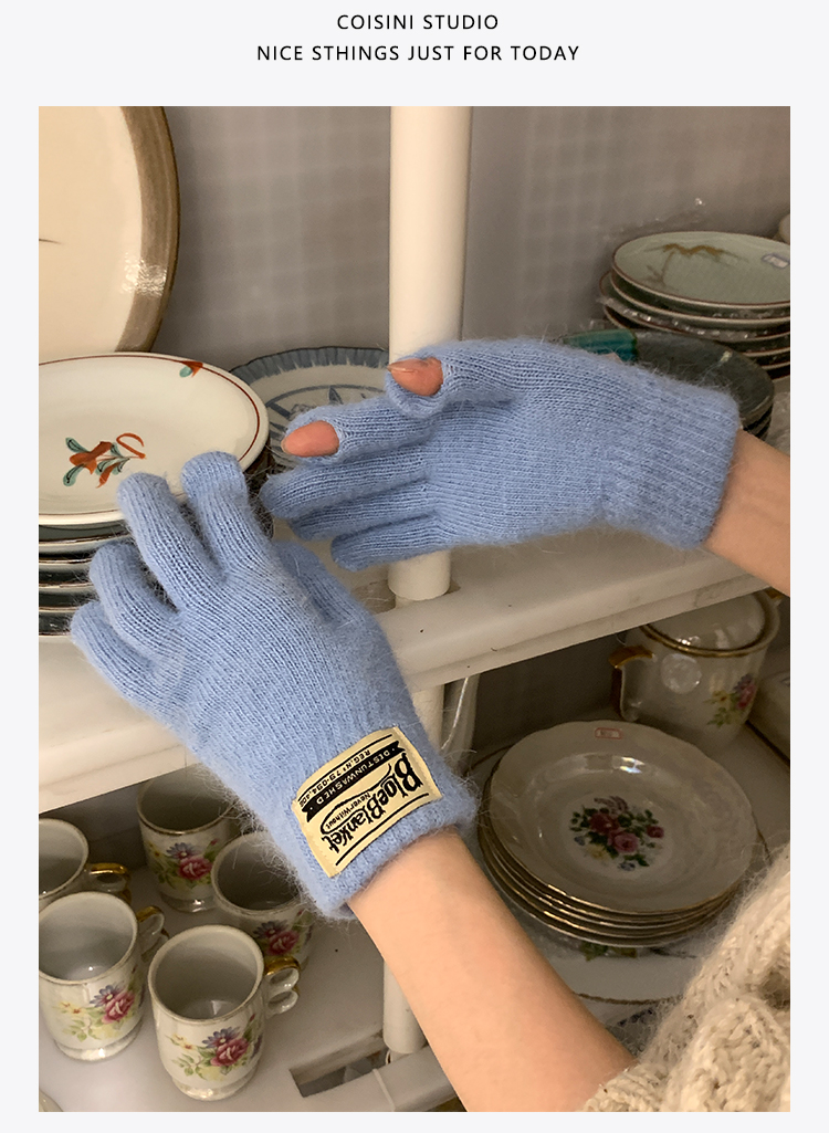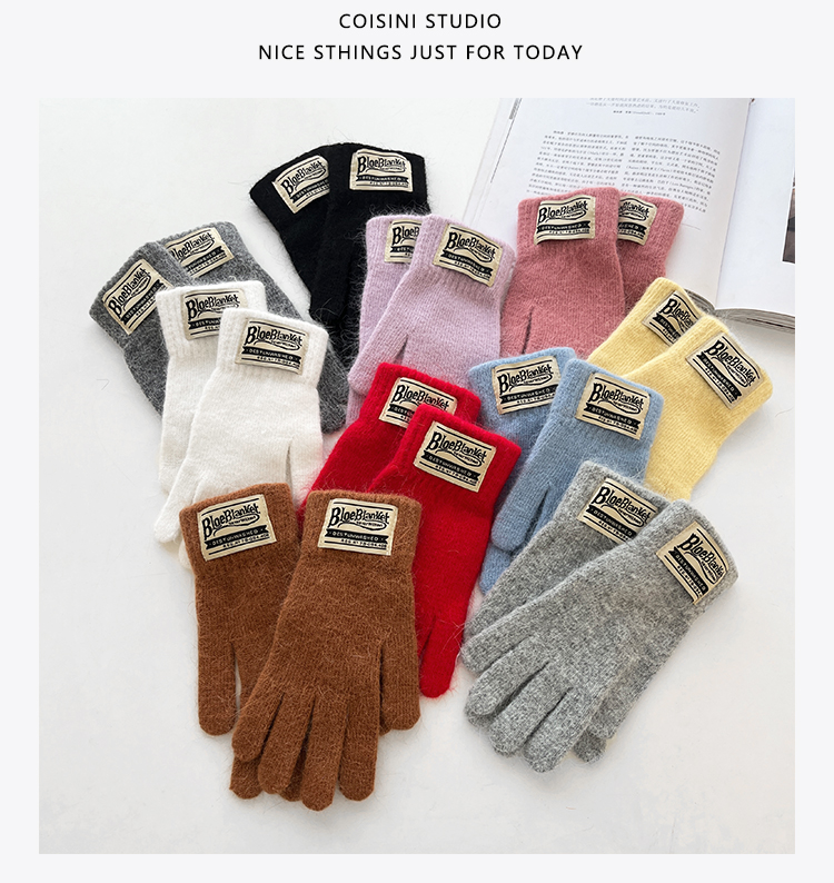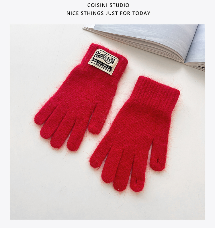 마카롱 컬러 니트 장갑 모조 토끼 모피 가을 겨울 커플 따뜻한 한국 단색 두꺼운 터치 스크린 장갑스토어 가기