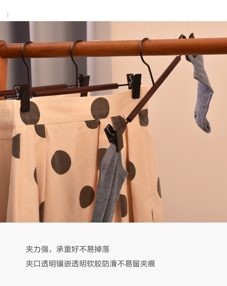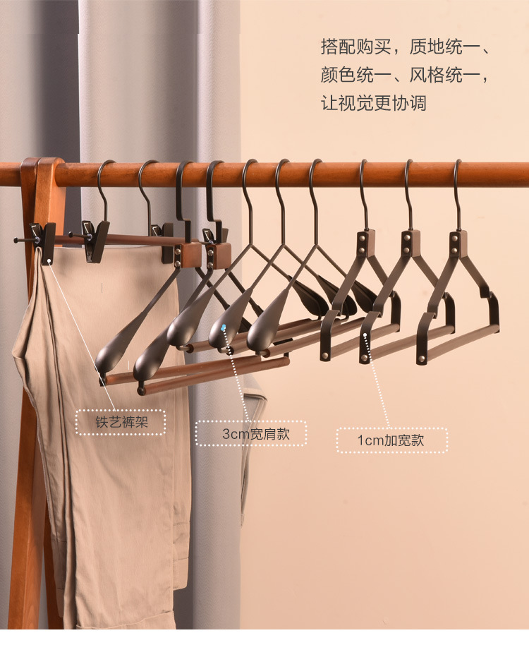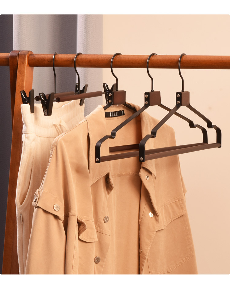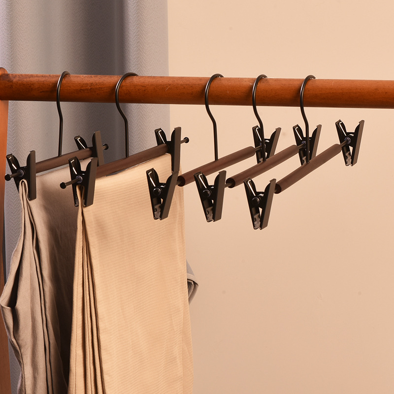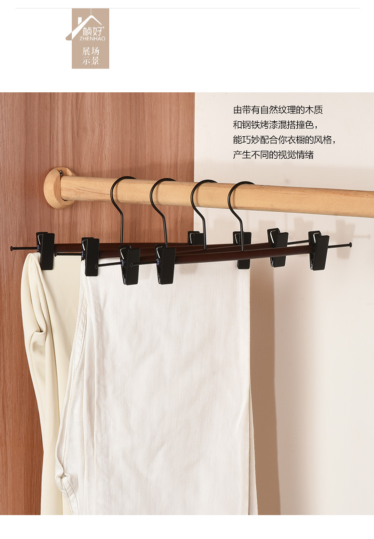 아이언 우드 트라우저 클립 걸이 라이트와 결합 된 럭셔리 원활한 솔리드 우드 미끄럼 방지 바지 매달려 가정용 호텔 도매 바지 랙 걸이스토어 가기