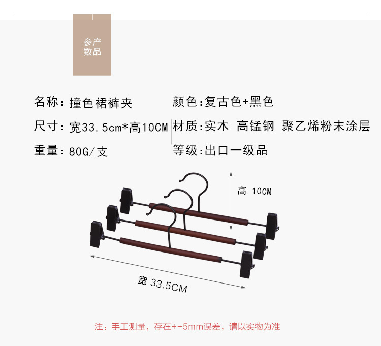 아이언 우드 트라우저 클립 걸이 라이트와 결합 된 럭셔리 원활한 솔리드 우드 미끄럼 방지 바지 매달려 가정용 호텔 도매 바지 랙 걸이