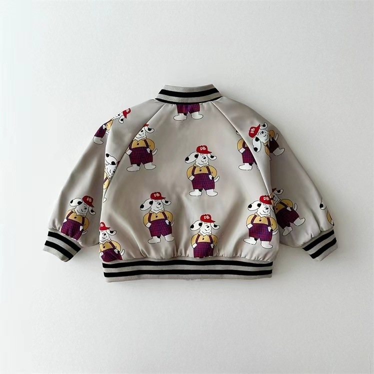 봄과 가을 시즌 한국 스타일 슈퍼 와이드 인 스타일 어린이 의류 귀엽고 재미있는 양면 착용 야구 유니폼 지퍼 셔츠 재킷