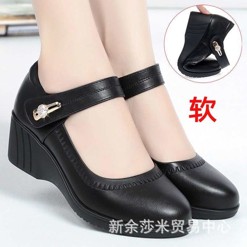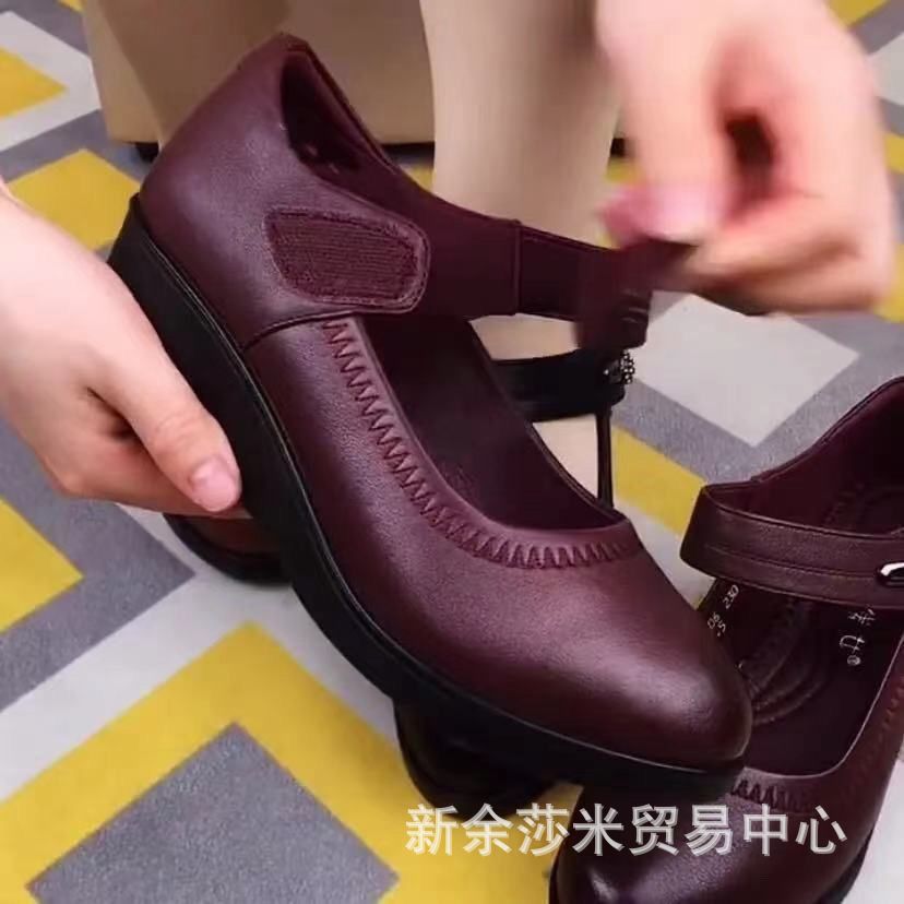 소스 제조업체 어머니 신발 편안한 쐐기 부드러운 바닥 2024 봄과 가을 중년 및 노인 신발 플러스 사이즈 후크 및 루프 여성용 가죽 신발스토어 가기