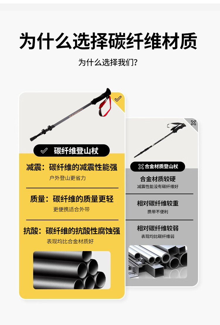 재고 등산 스틱 초경량 탄소 등반 스틱 남성과 여성을위한 야외 하이킹 등반 접이식 미끄럼 방지 탄소 섬유 워킹 스틱스토어 가기