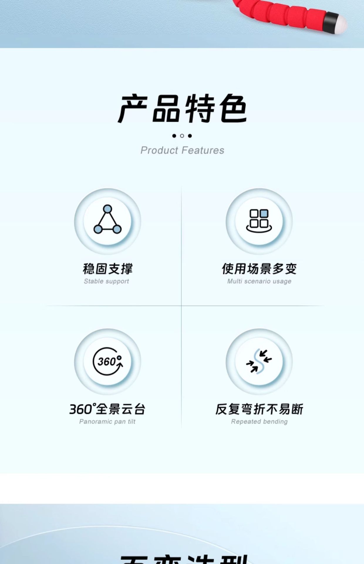 • [대형 모델의 상단 구성] 업그레이드된 문어 스탠드 + 미끄럼 방지 휴대폰 클립 + 블루투스 셀카 + 10inch 필 라이트