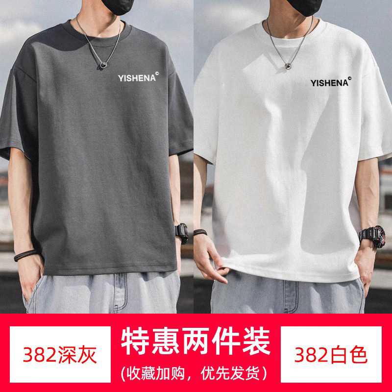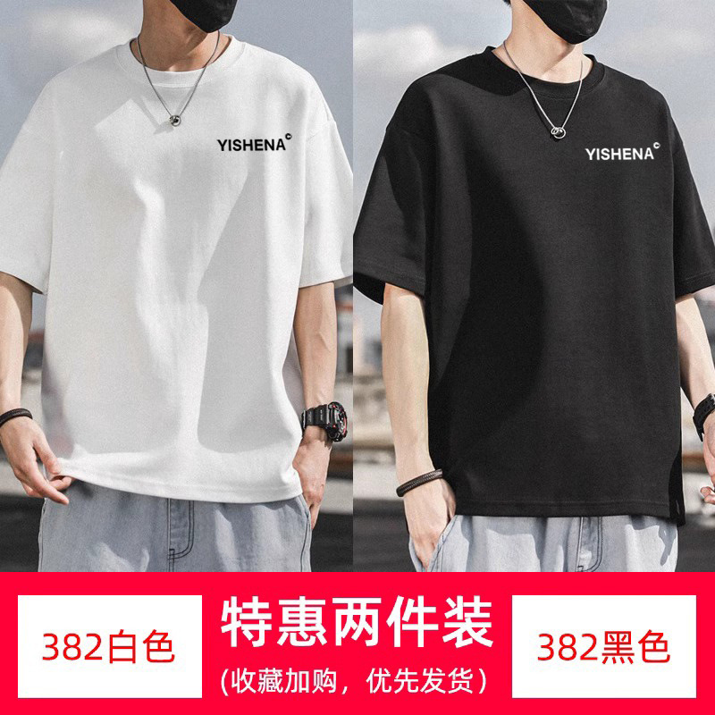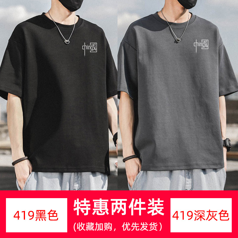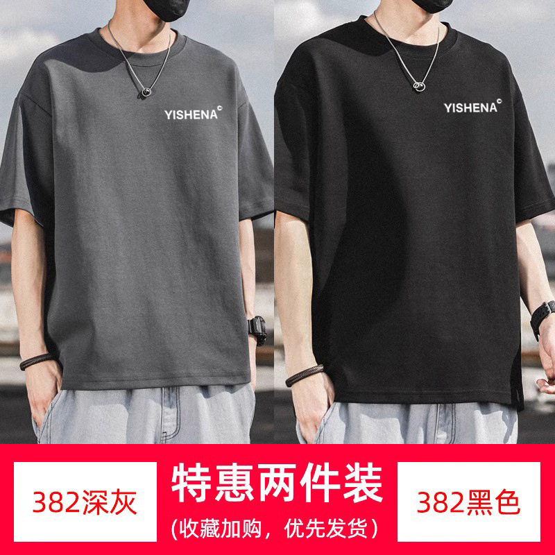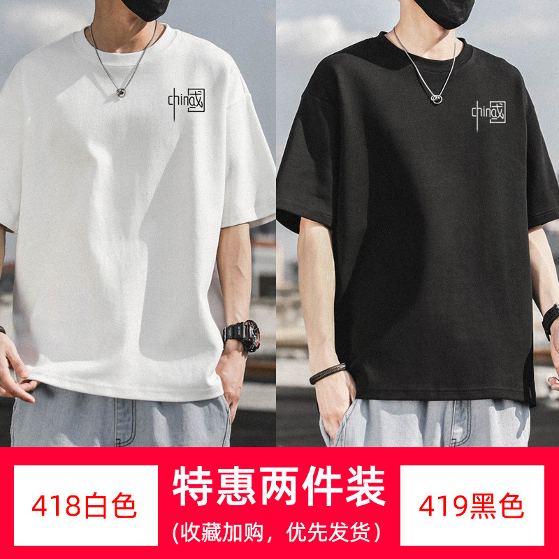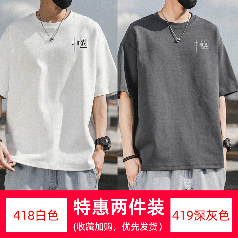 冰丝短袖T恤男2023夏季潮流休闲凉感上衣服港风青年圆领宽松体恤