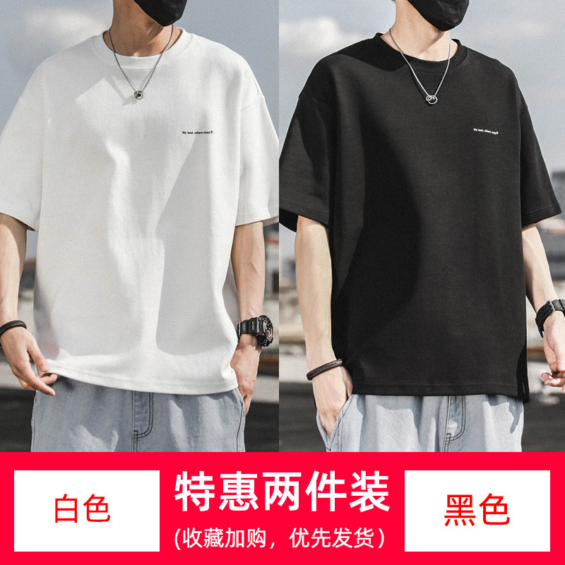 冰丝短袖T恤男2023夏季潮流休闲凉感上衣服港风青年圆领宽松体恤스토어 가기