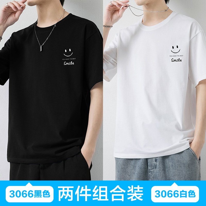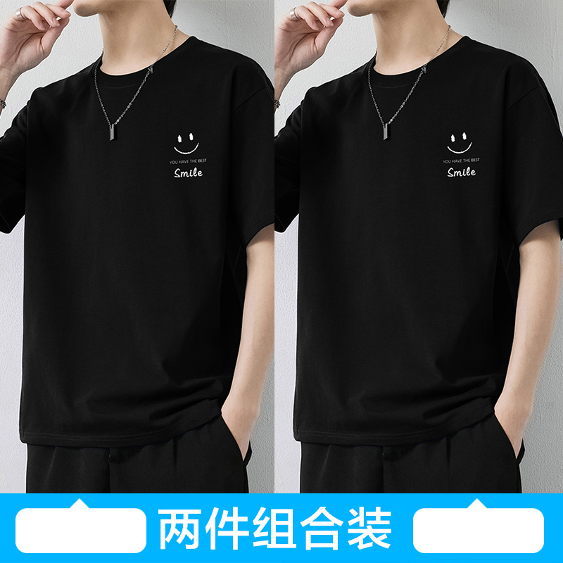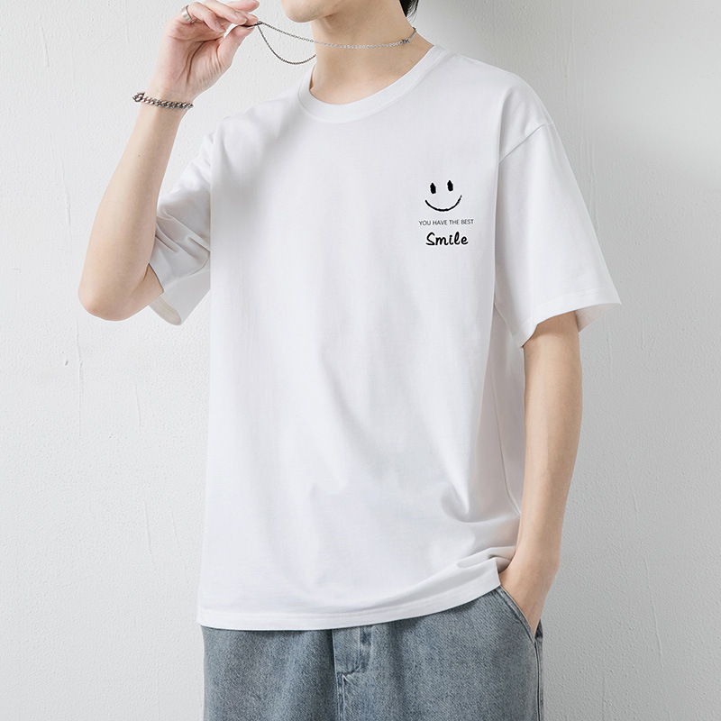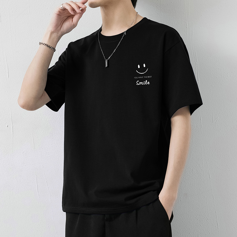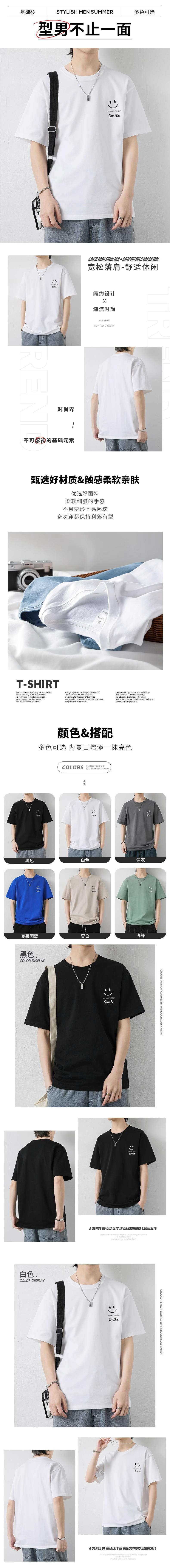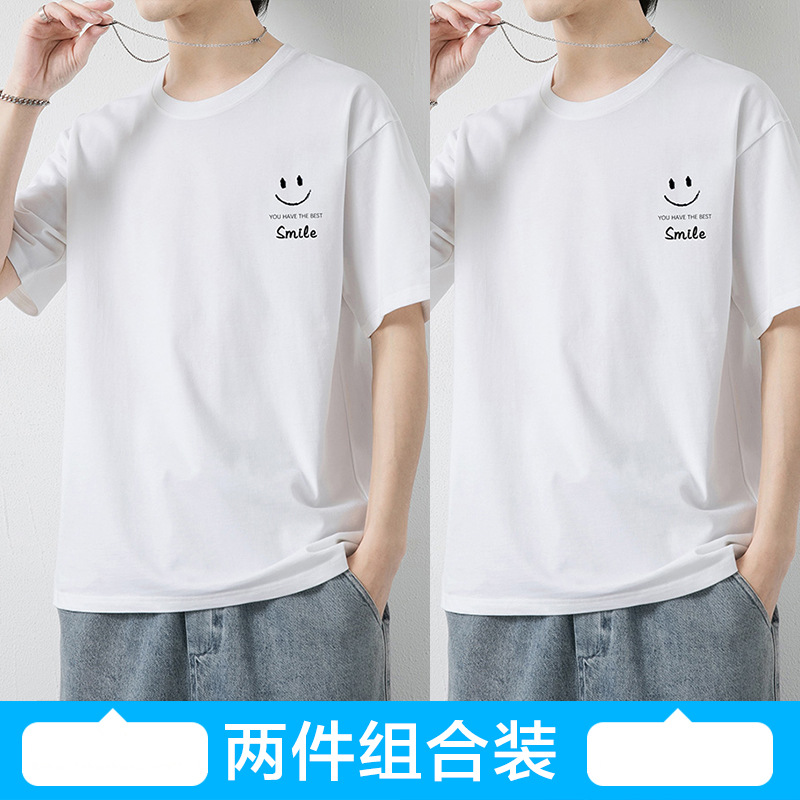 莫代尔短袖t恤男夏季潮流冰丝半袖体恤学生宽松大码上衣笑脸落肩