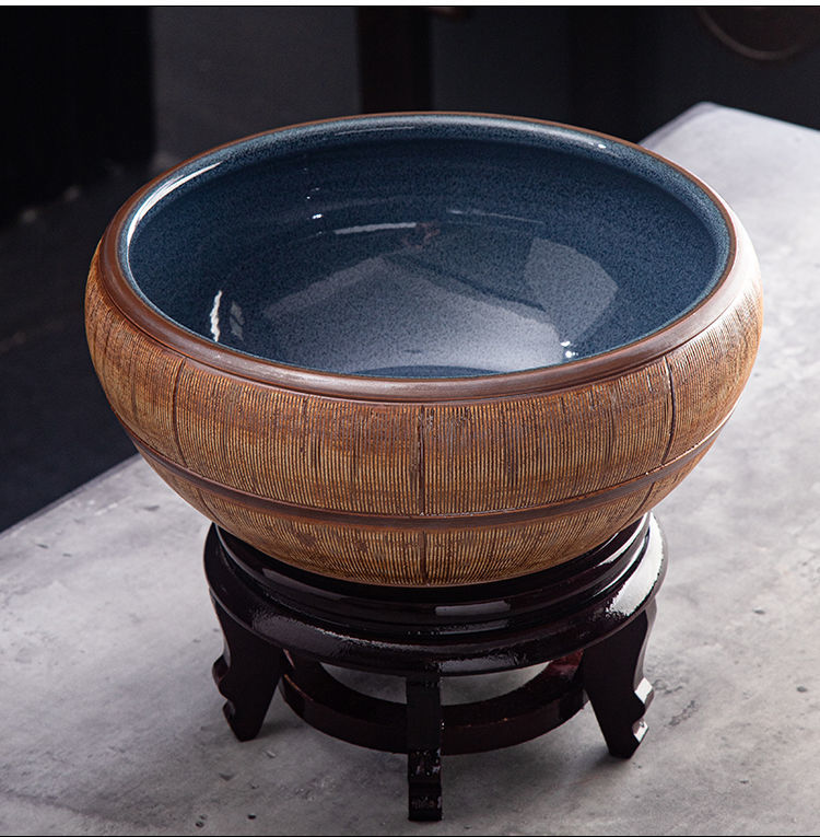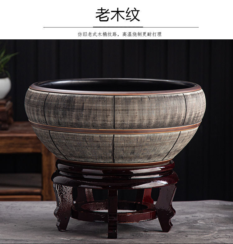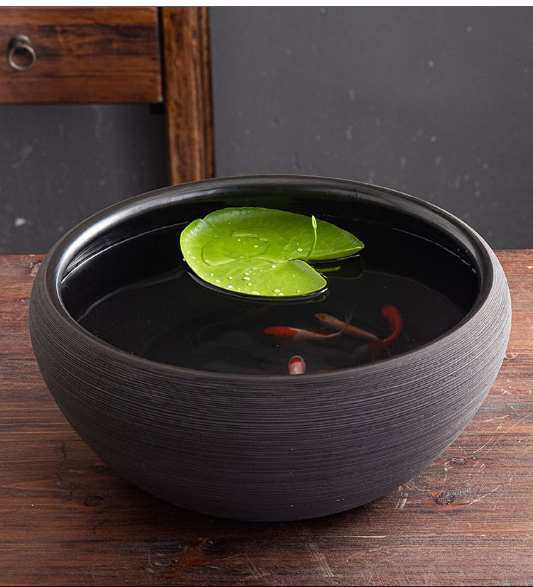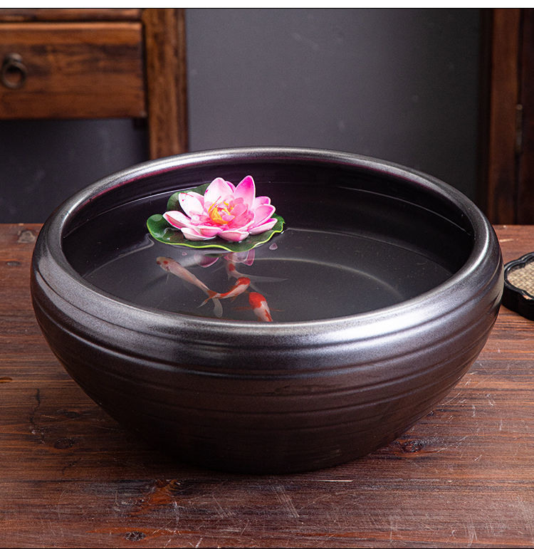 Jingdezhen 세라믹 금붕어 탱크 문화 그릇 물 백합 꽃 냄비 구리 돈 잔디 특별기구 검은 고대 생태 탱크스토어 가기
