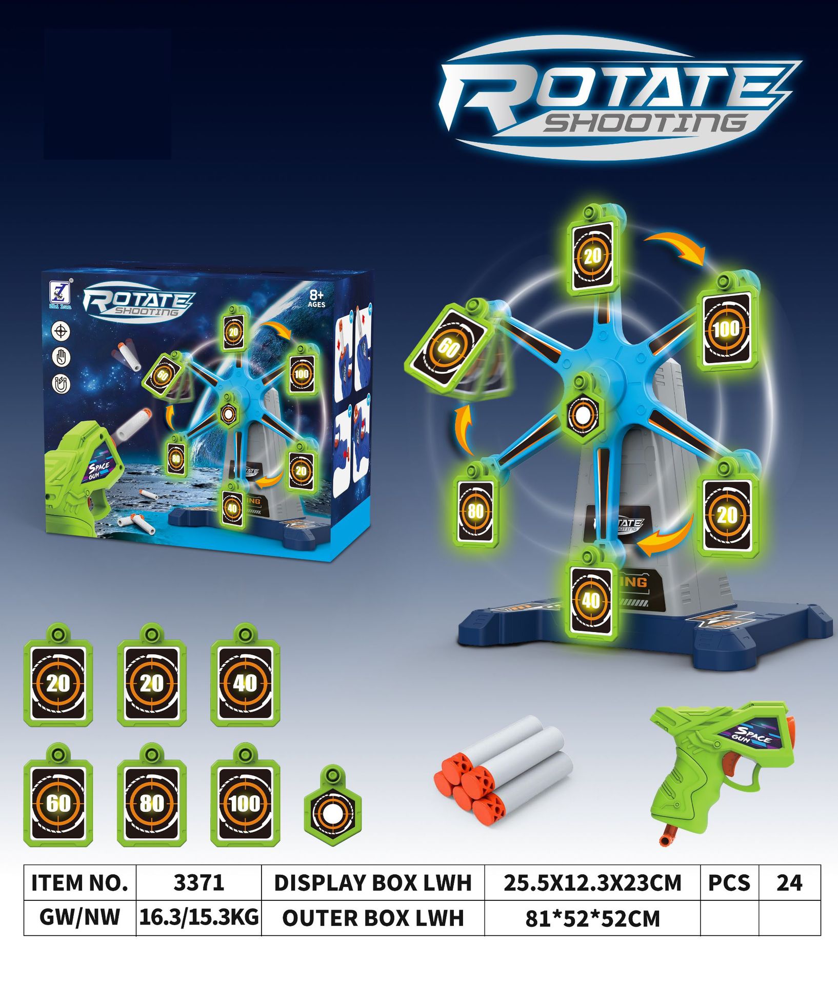 • 【3371】야광 회전 타겟(표준 구성: 총 1개) 640g