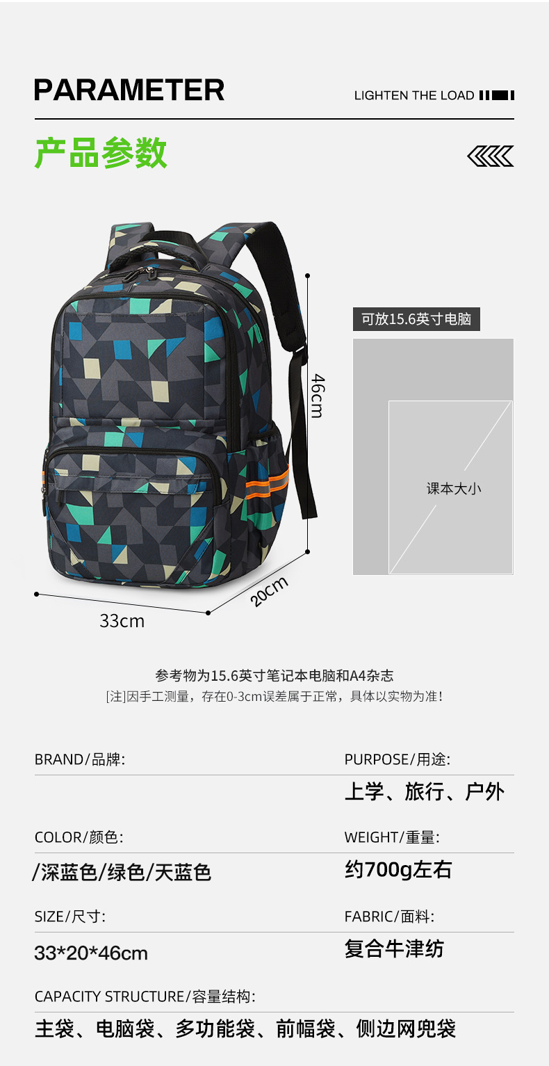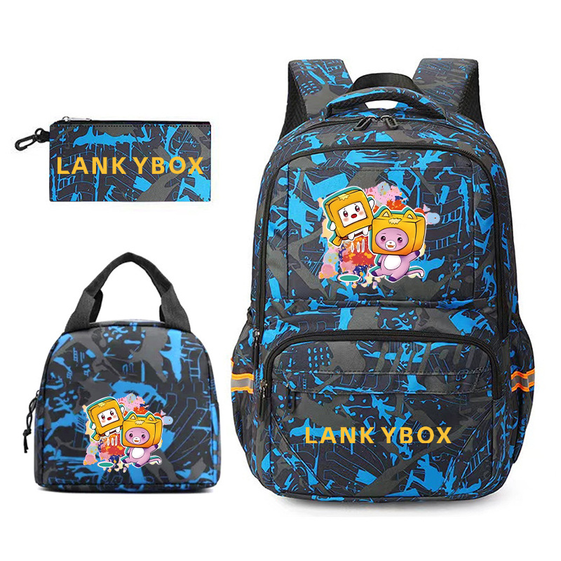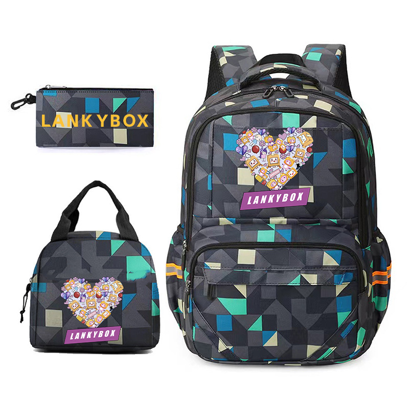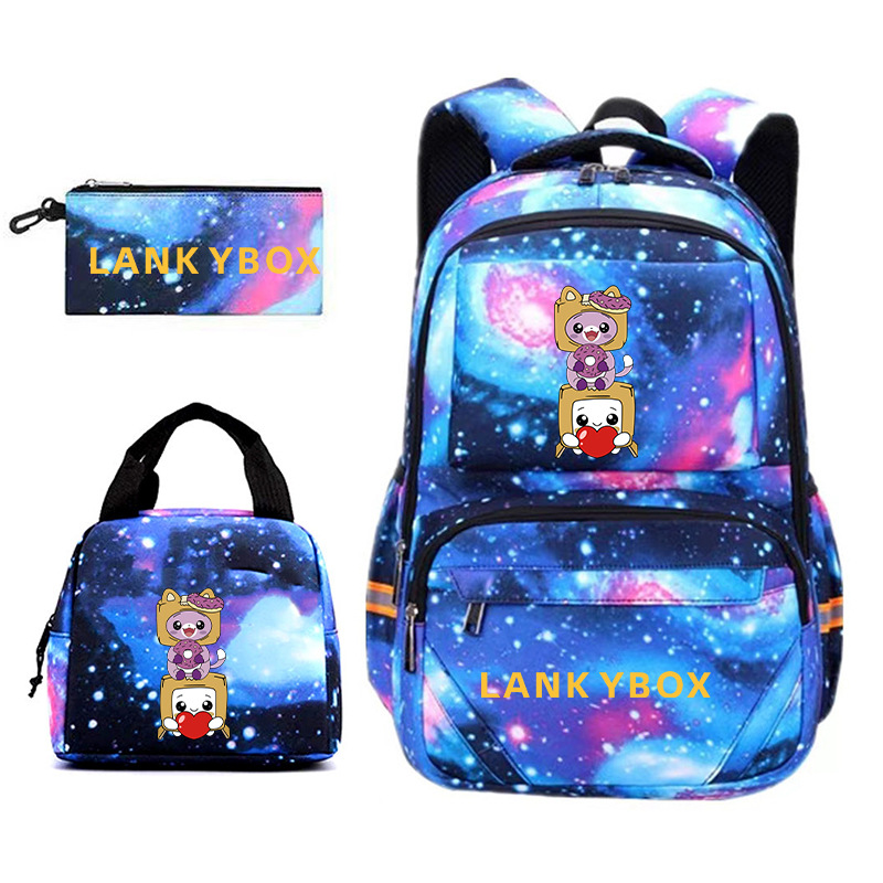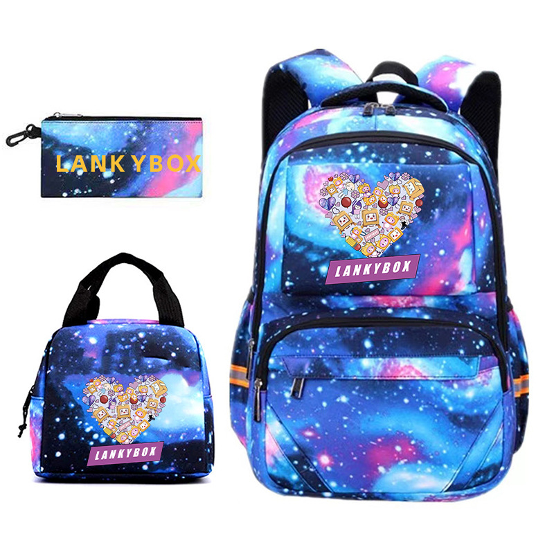 Lankybox 대용량 학교 가방 소녀의 십대 인쇄 학교 가방 3 종 세트