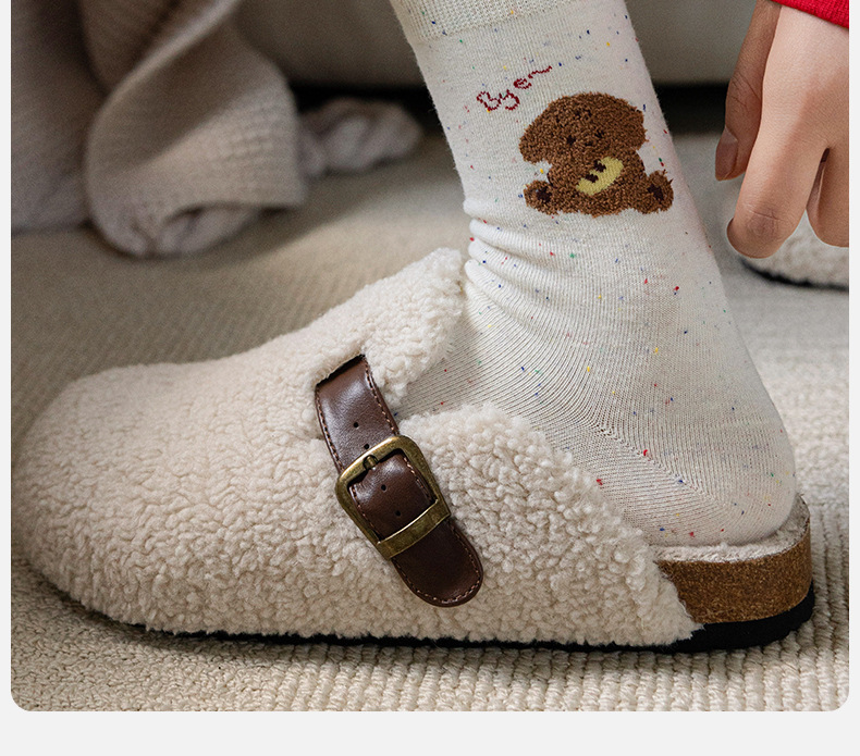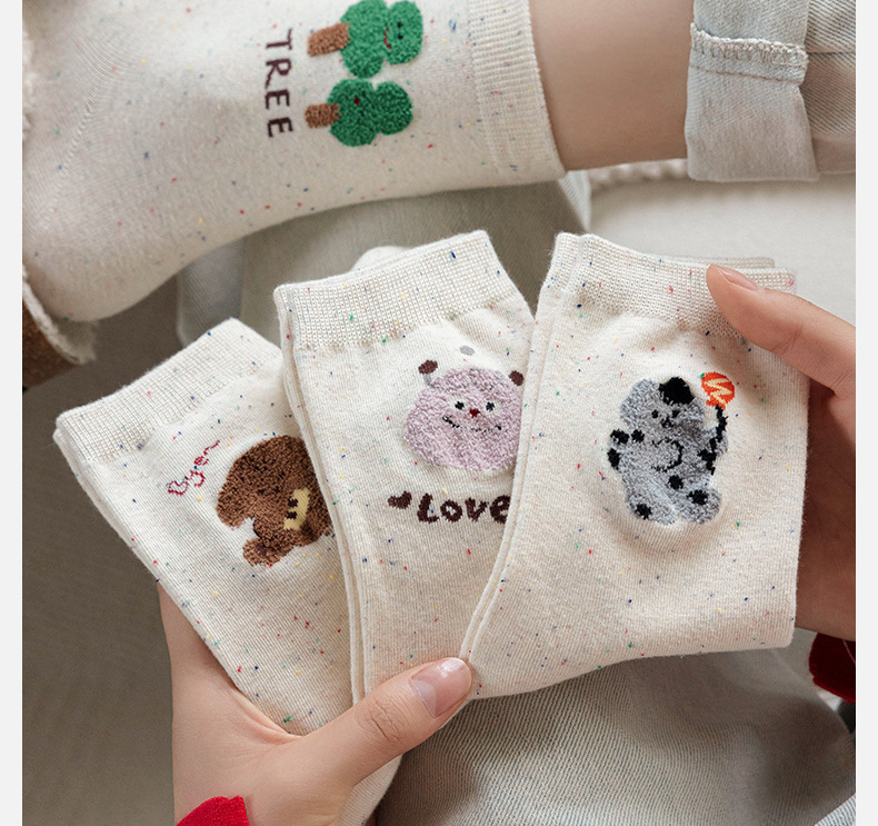 양말 여성의 가을 포인트 원사 만화 귀여운 여성의 중간 길이 양말 Ins 트렌디 한 한국 스타일 독특한 잠금 중간 길이의 흰색 양말
