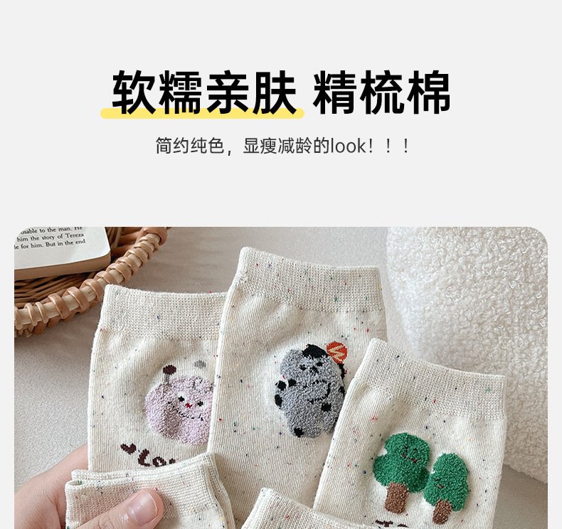 양말 여성의 가을 포인트 원사 만화 귀여운 여성의 중간 길이 양말 Ins 트렌디 한 한국 스타일 독특한 잠금 중간 길이의 흰색 양말스토어 가기