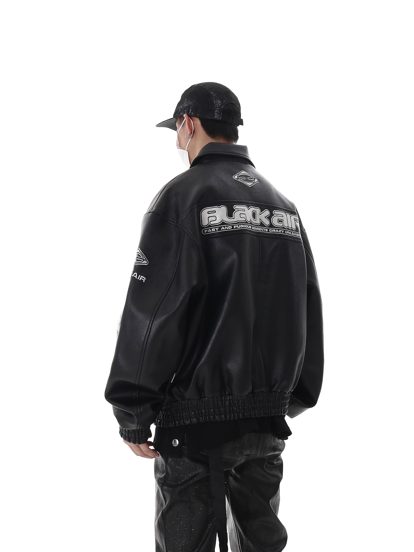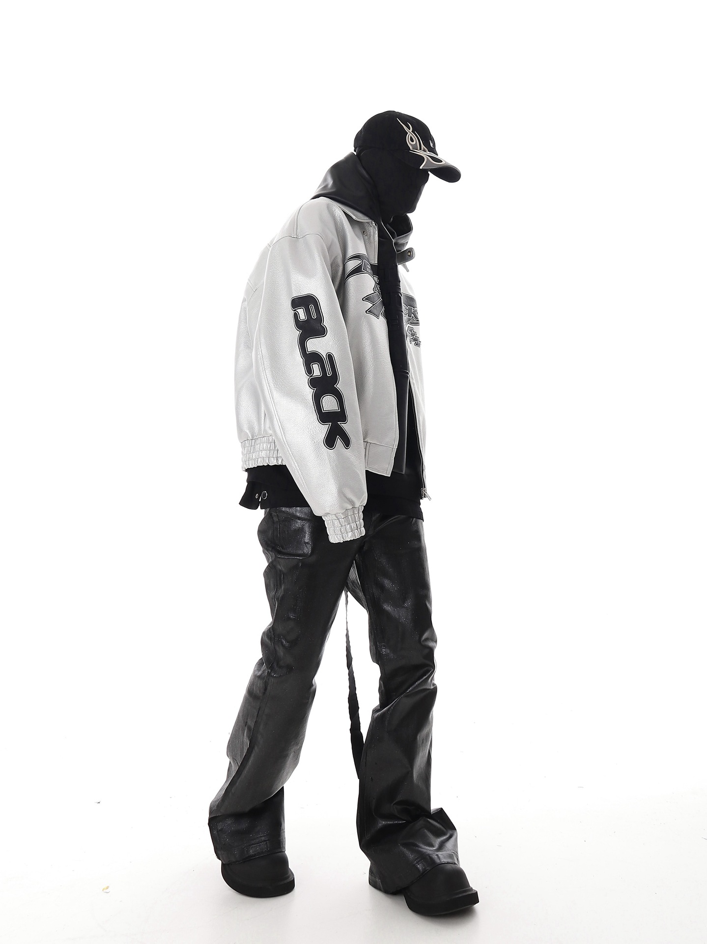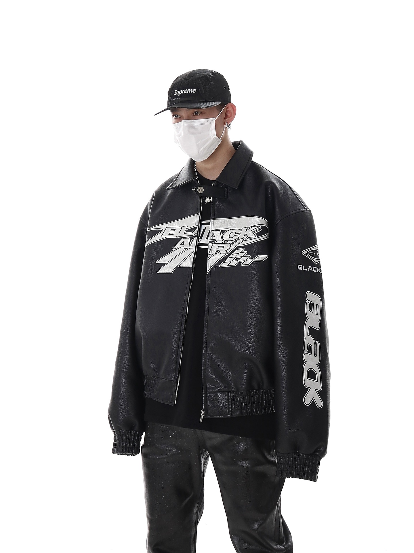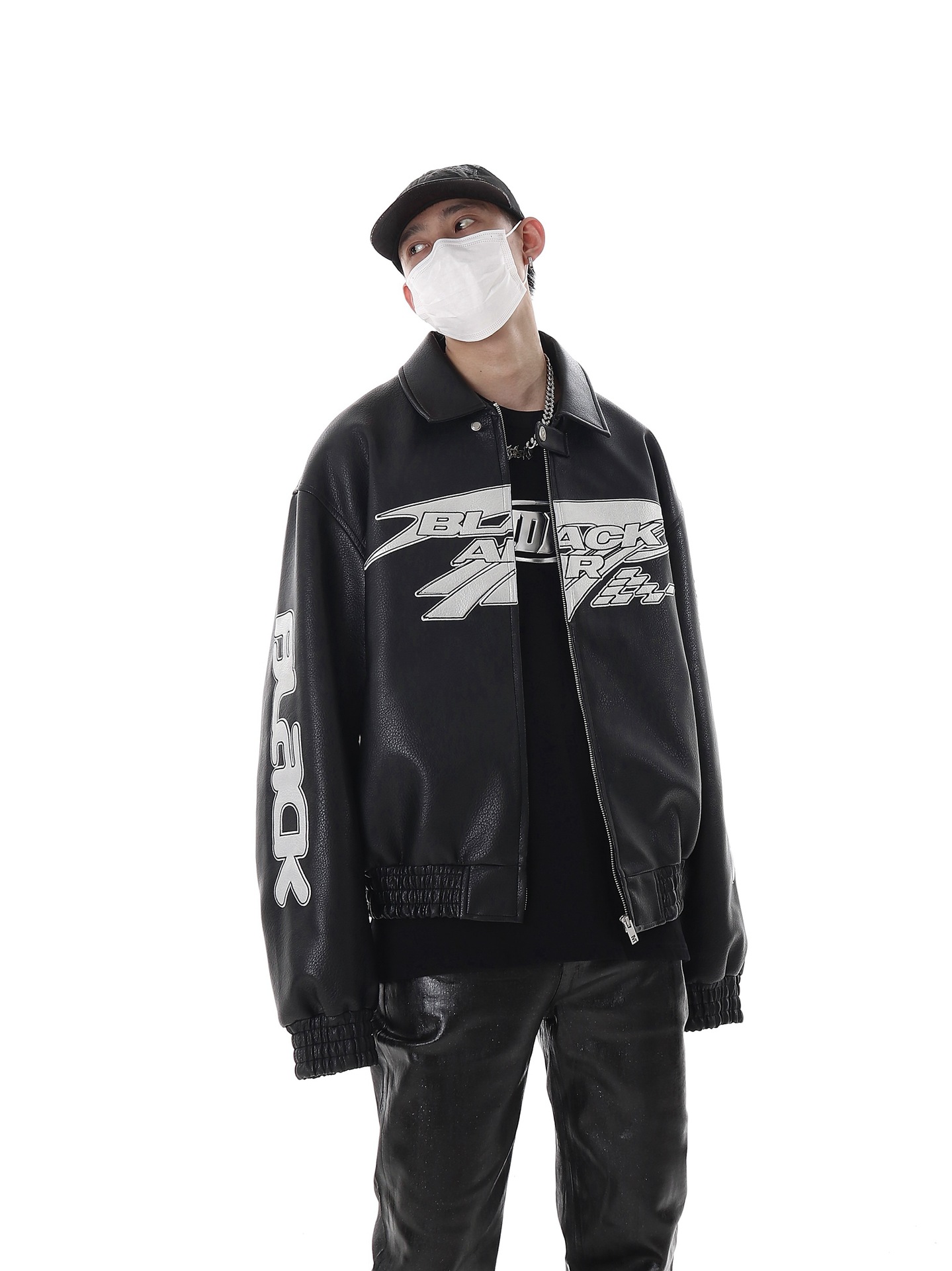 아메리칸 스타일 하이 스트리트 자수 짧은 재킷 남자의 봄과 가을 2024 새로운 틈새 프로필 오토바이 가죽 재킷 코트 탑스토어 가기