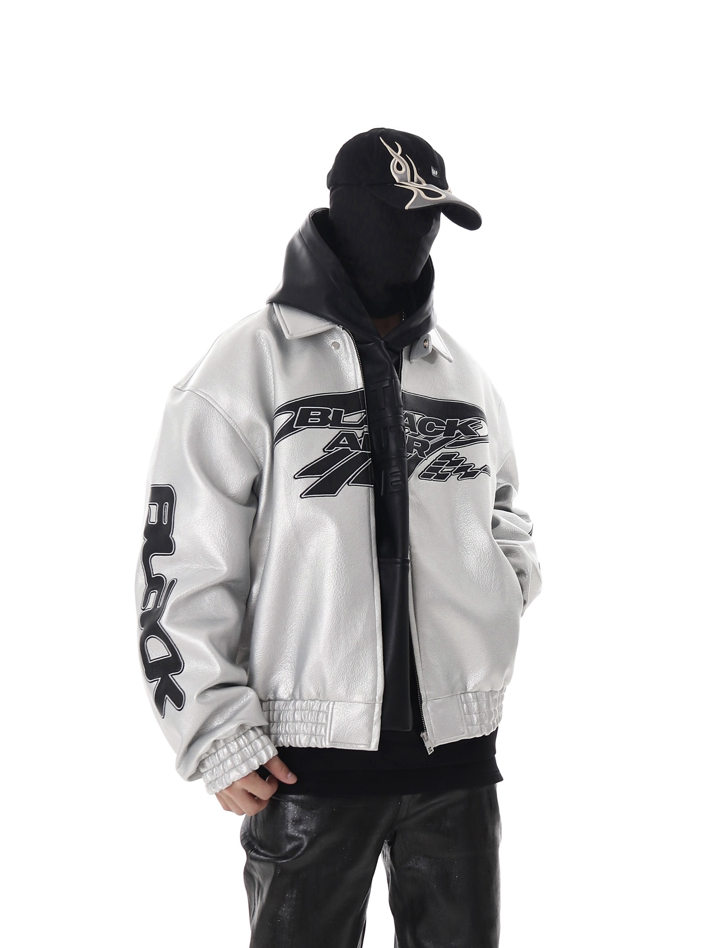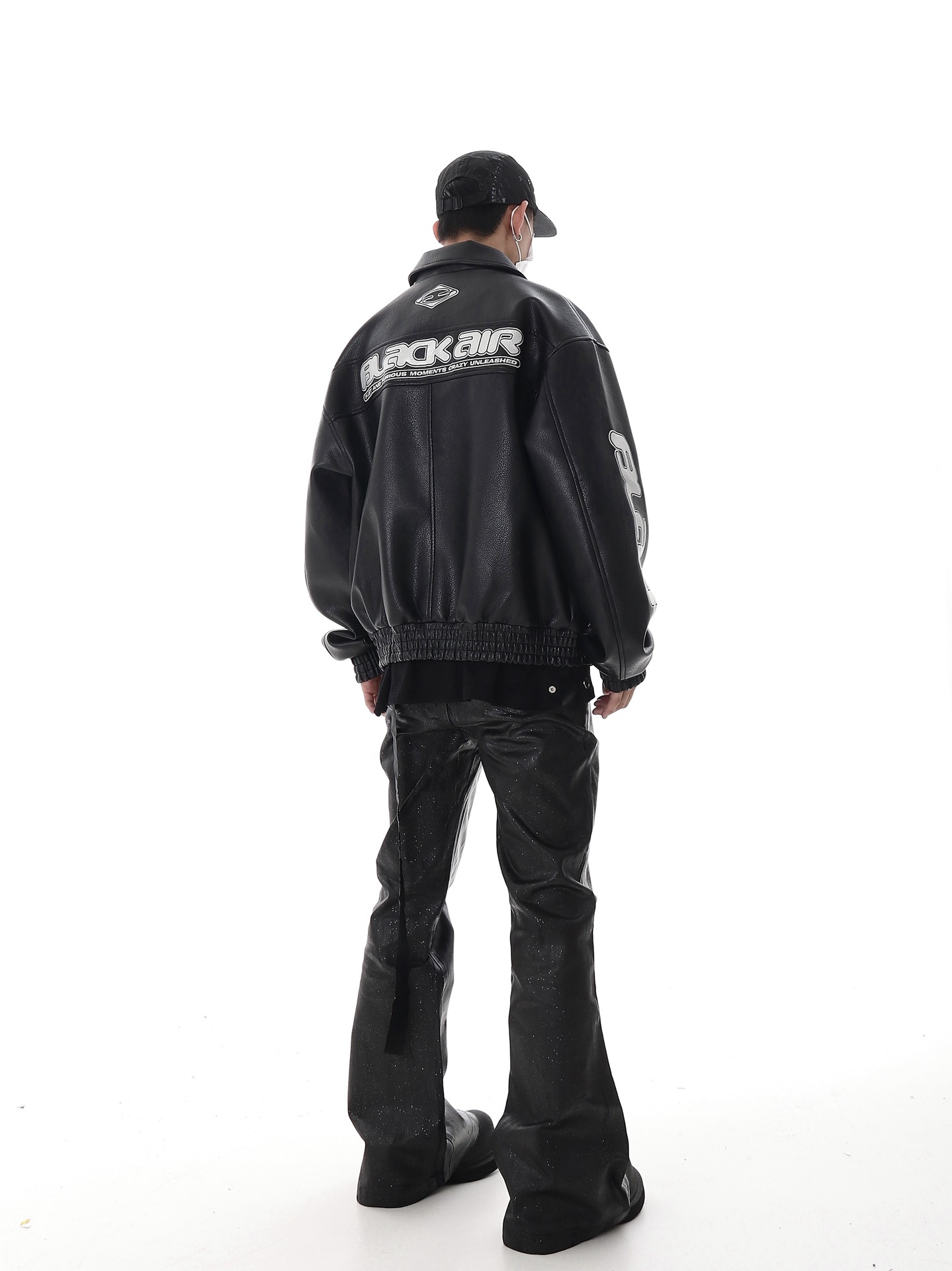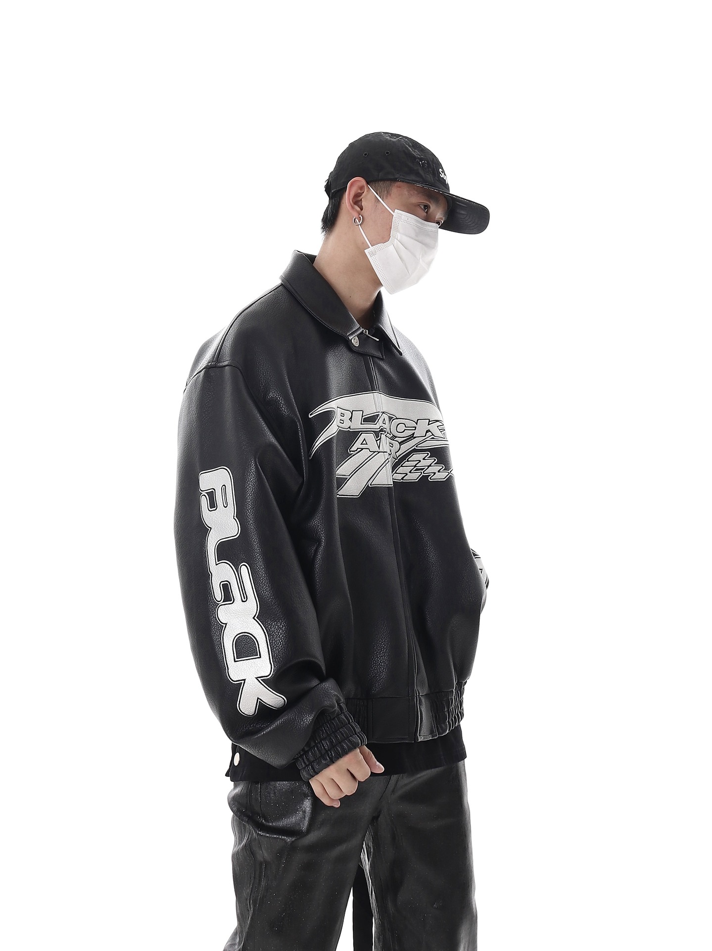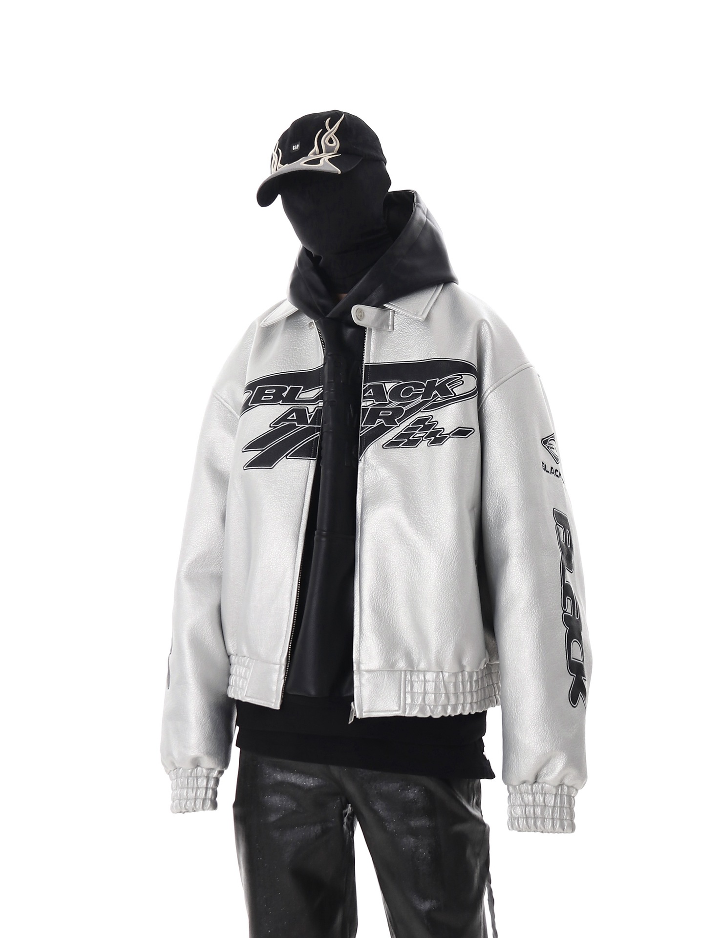 아메리칸 스타일 하이 스트리트 자수 짧은 재킷 남자의 봄과 가을 2024 새로운 틈새 프로필 오토바이 가죽 재킷 코트 탑스토어 가기