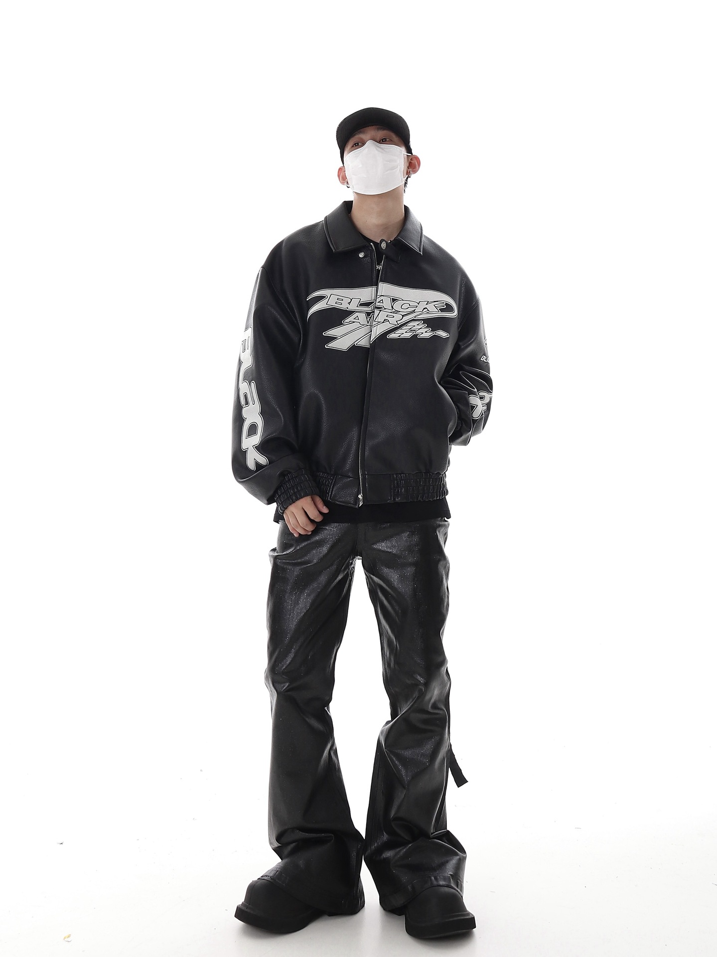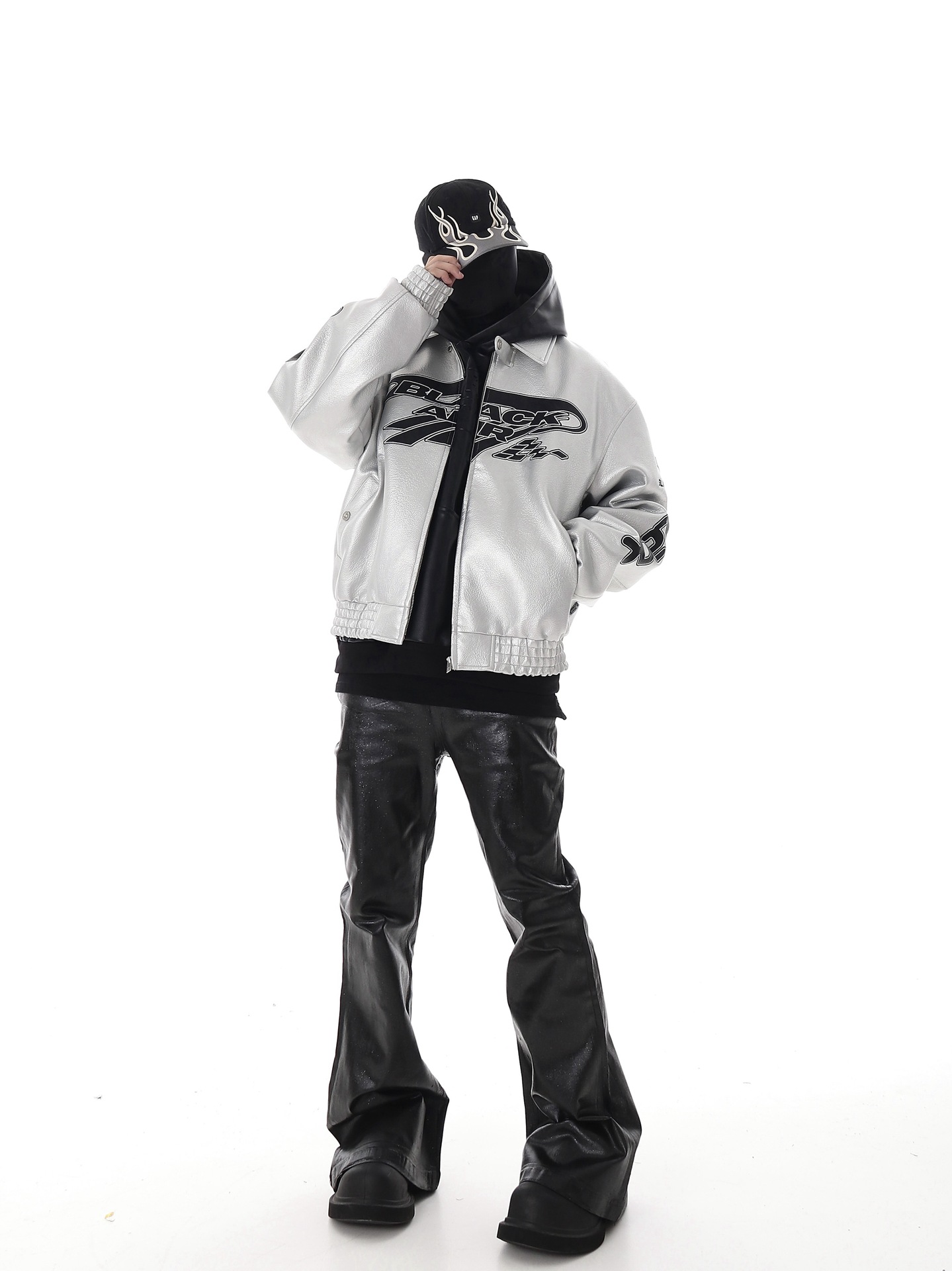 아메리칸 스타일 하이 스트리트 자수 짧은 재킷 남자의 봄과 가을 2024 새로운 틈새 프로필 오토바이 가죽 재킷 코트 탑