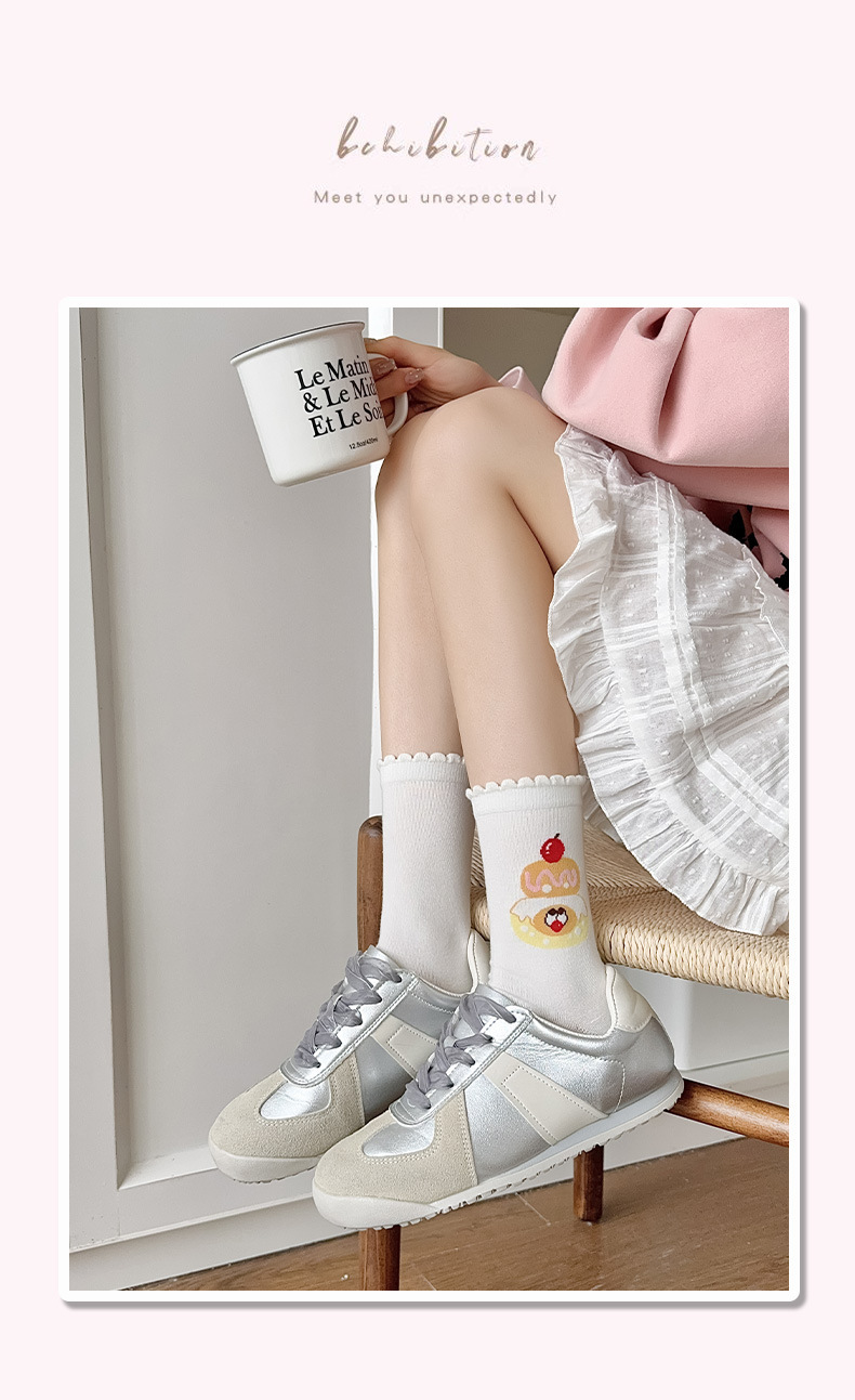 양말 여성 가을과 겨울 새로운 원래 고양이 케이크 만화 중간 길이의 양말 땀 흡수성 스타킹 일본식 흰색 양말