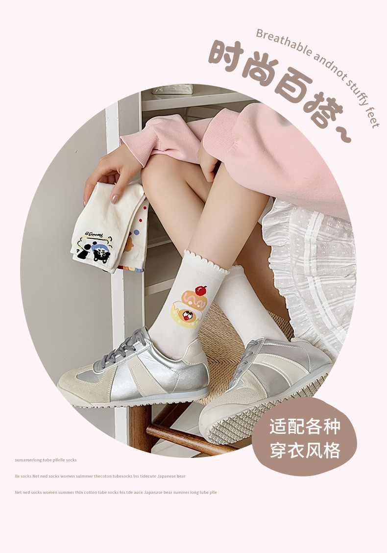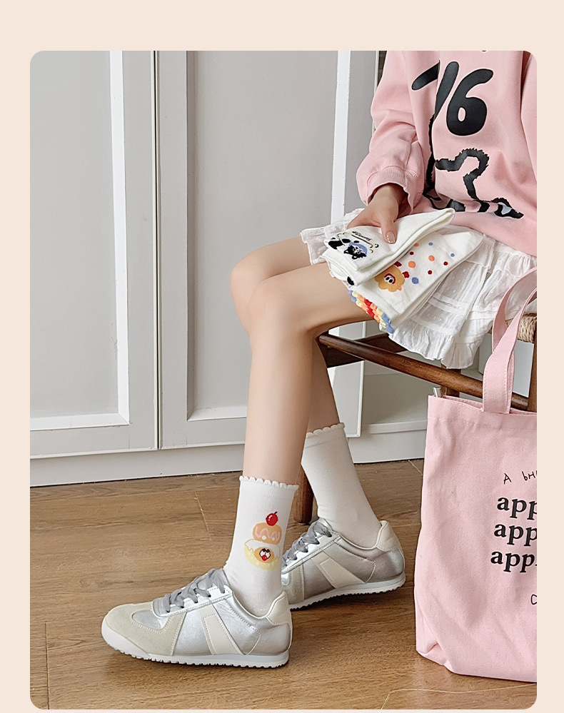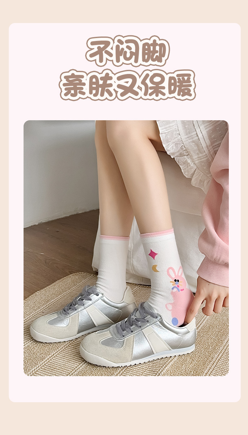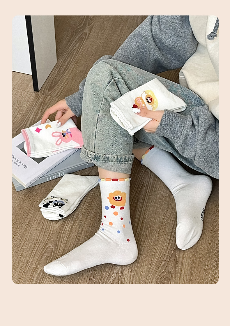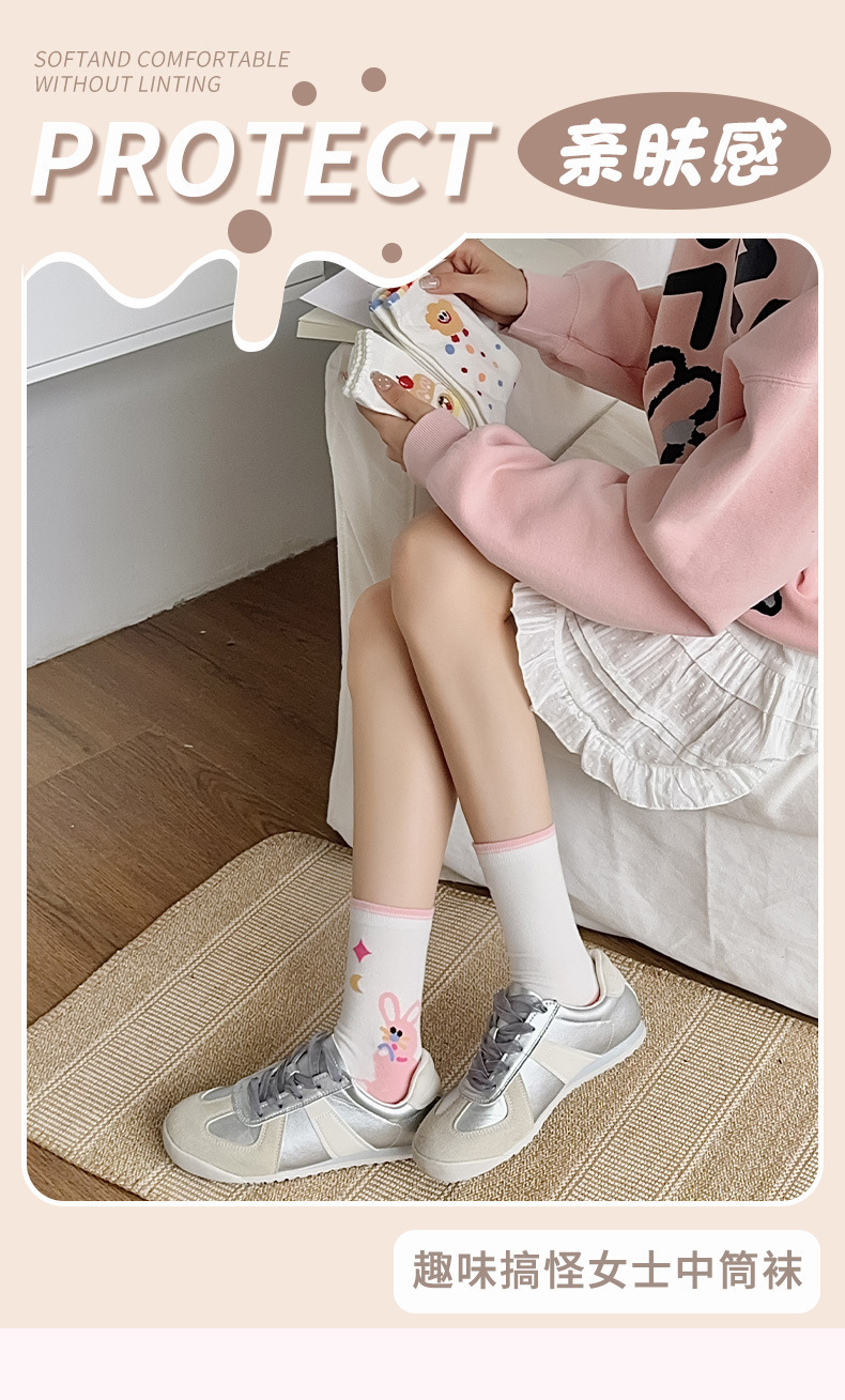 양말 여성 가을과 겨울 새로운 원래 고양이 케이크 만화 중간 길이의 양말 땀 흡수성 스타킹 일본식 흰색 양말스토어 가기