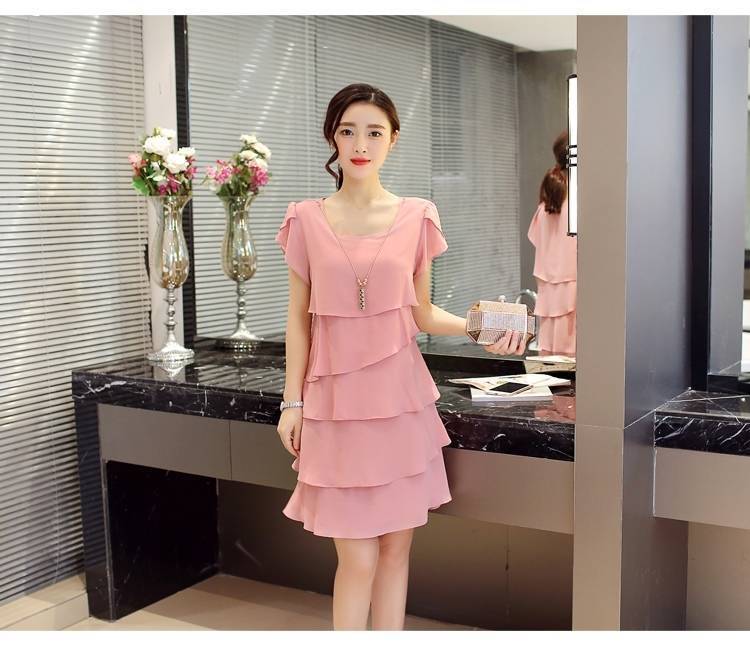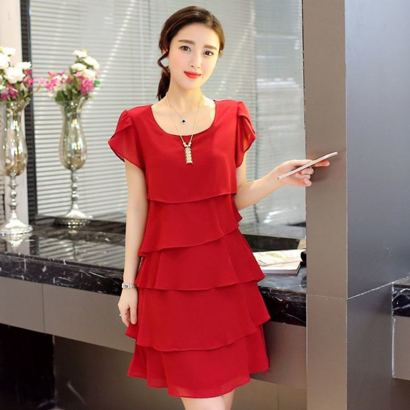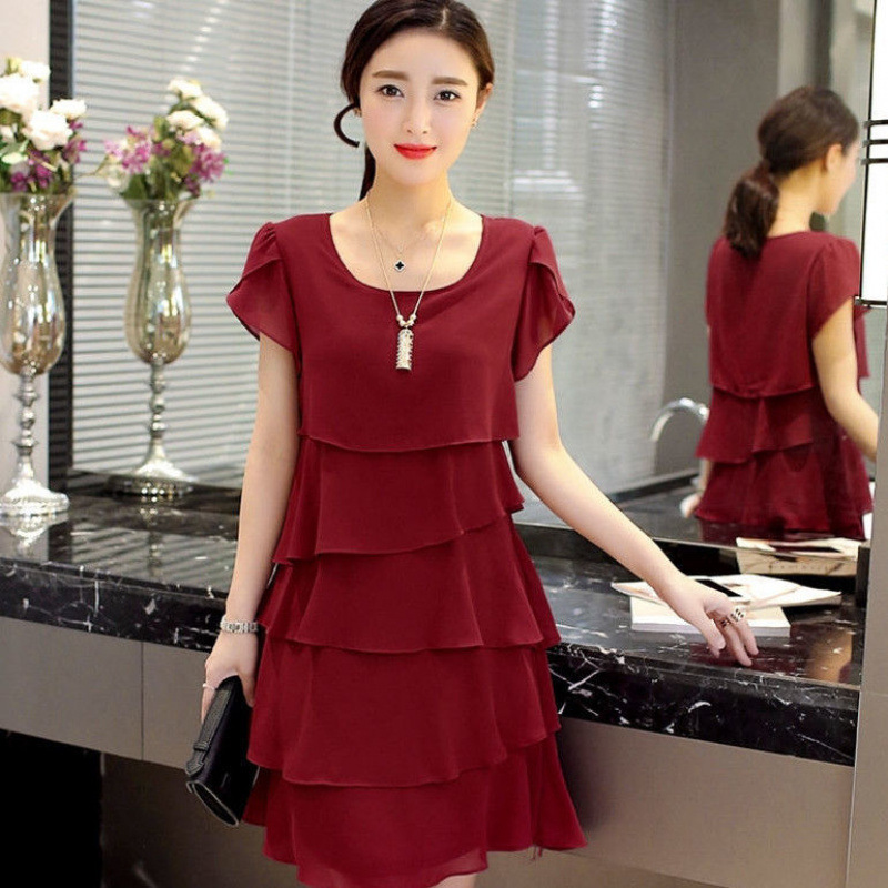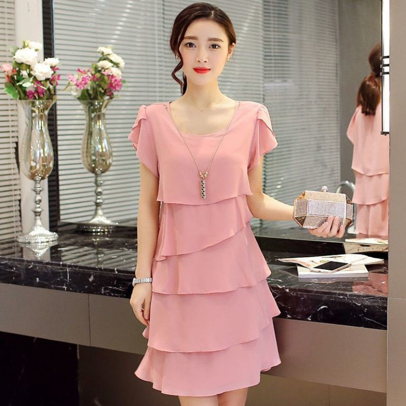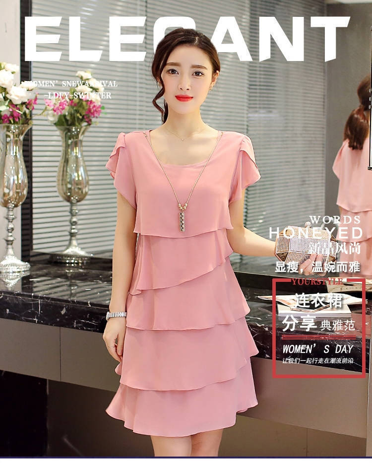 쉬폰 셔츠 원피스 여성의 2025 여름 새로운 여성복 디자인 센스 느슨한 배 커버 우아한 짧은 소매 케이크 스커트스토어 가기